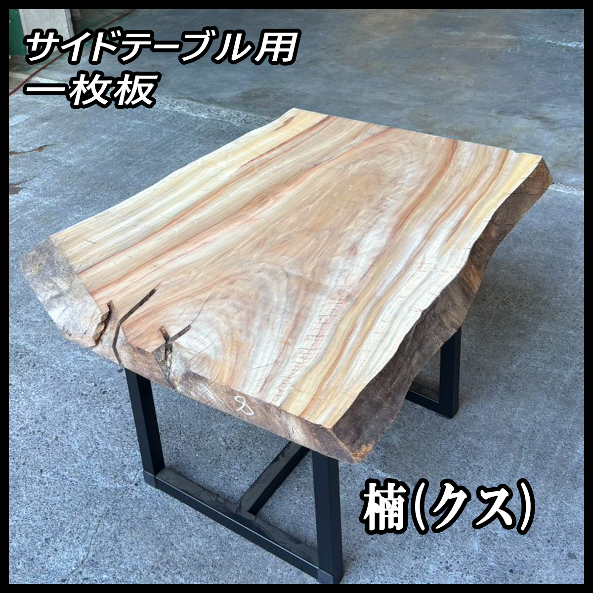 | 【商品説明】 | 樹種は楠(クス)、無垢材です。 自然が作り出した独特の形が美しい一枚です。 サイドテーブルに如何でしょうか? 楠(クス)はいい香りがします。 【芳香】の花言葉を持つ楠(クス)は、 清々しい香りと、複雑に色味が混ざりあう様が特徴です。 その特徴的な香りは、防虫・消臭・リラックス効果もあります。 無塗装・プレナー加工済みです。 小さいヒビがあります。 ノコ目があるのでカットする想定で使える部分の寸法を計測しています 写真から確認下さい。 脚は付属しませんのでご注意ください。 |