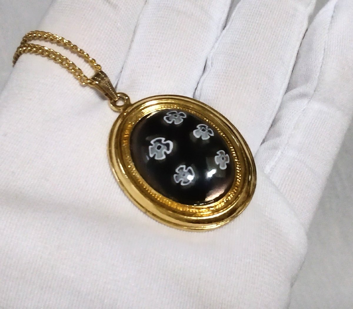 | サイズ | サイズ:★トップの大きさは、縦約38×横約28ミリです。 ★七宝部分の大きさは、縦約25x横約18ミリです。 ミリフォリフリットの大きさは、 縦約5ミリx横約5ミリです。 ★チェーンは、金メッキの 喜平チェーン45cm です。 |