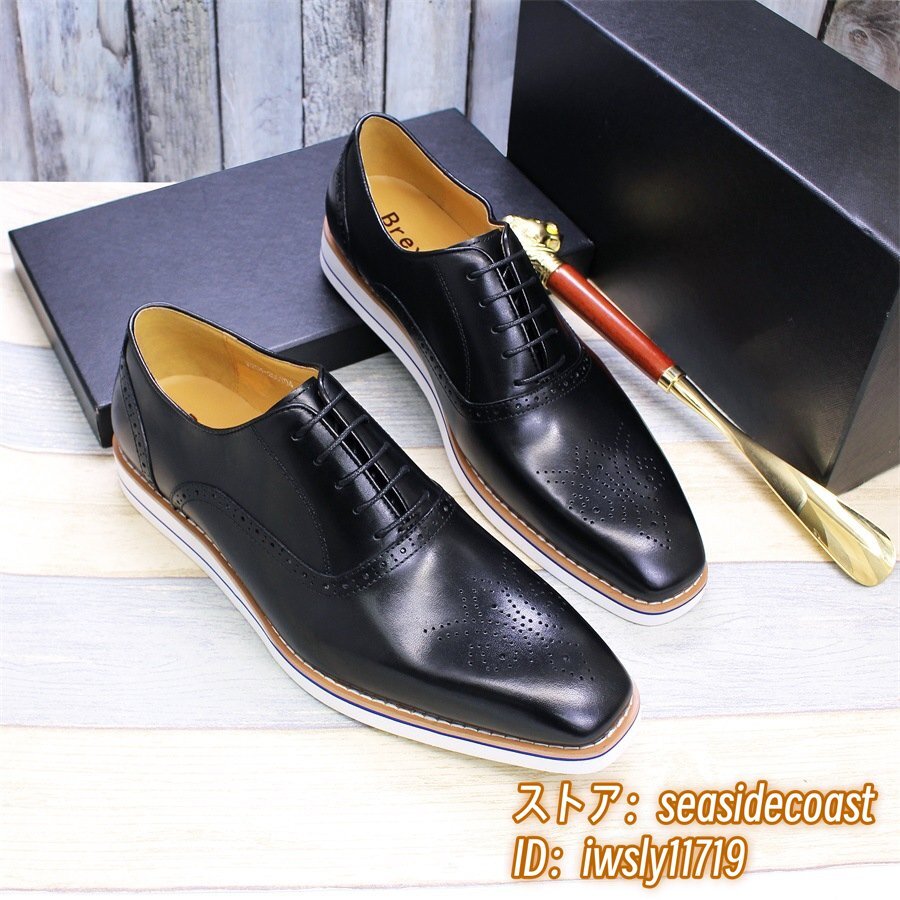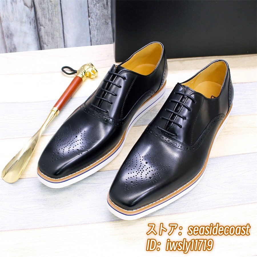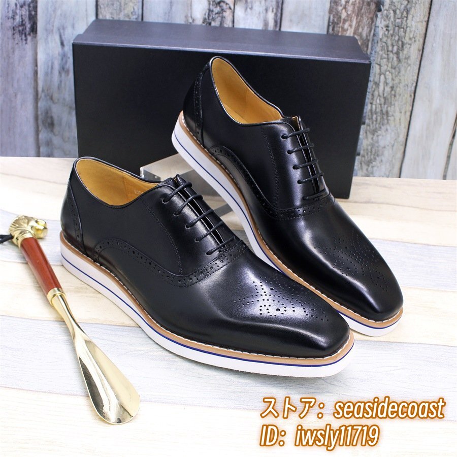 定価11万◆超希少 ビジネスシューズ メンズ 職人手塗り上げ 彫り レザーシューズ 本革 紳士靴 牛革 通勤 革靴 フォーマル ブラック 27.5cm