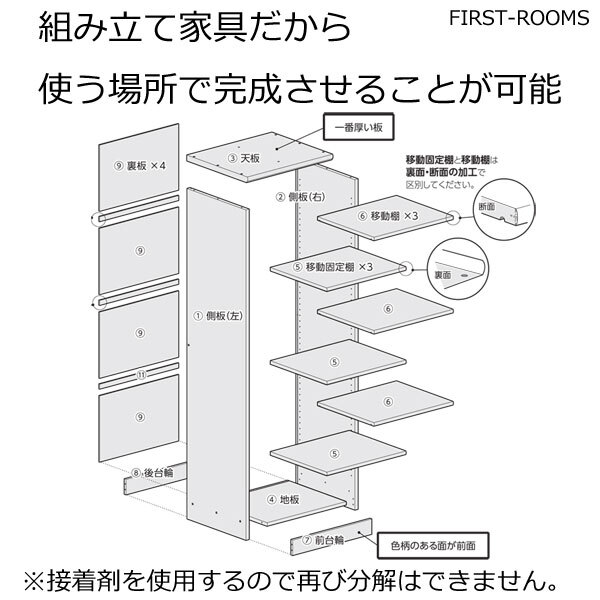 【特徴】幅15~70cm(棚板厚み1.7cm)(棚板厚み2.5cmは~幅90cm)まで1cm単位でオーダーメイド、本棚です。高さ49・60・70・80・88・117・135・150・178・211cm、奥行きは19・25・31・40・46cm、カラーは12色。【本体外寸】幅25~29×奥行き46×高さ178cm(約)(約)【棚板枚数】6枚【幅の内寸】全体の幅サイズから3.6cmを引いた寸法となります。※側板(縦の両脇の板)の厚みは1.7cm棚は移動可能で穴から穴までの高さ(ピッチ)は3cm【色・主材】12色・プリント紙化粧繊維板【生産国 】JAPAN※お客様組み立て商品です。(組み立て家具です)【お詫び】特注のため、お届けまで10~14日かかります。送料込ですが、北海道・沖縄・離島は別途送料がかかります。【井崎店長から一言】特別注文のため、ご注文後のサイズの変更、お取り消しがお受けすることが出来ません。サイズの確認を十分にお願いいたします。【お支払い方法について】>申し訳ございませんが、代金引換以外をお選びください。プラス・マイナスドライバーで組み立てられます。