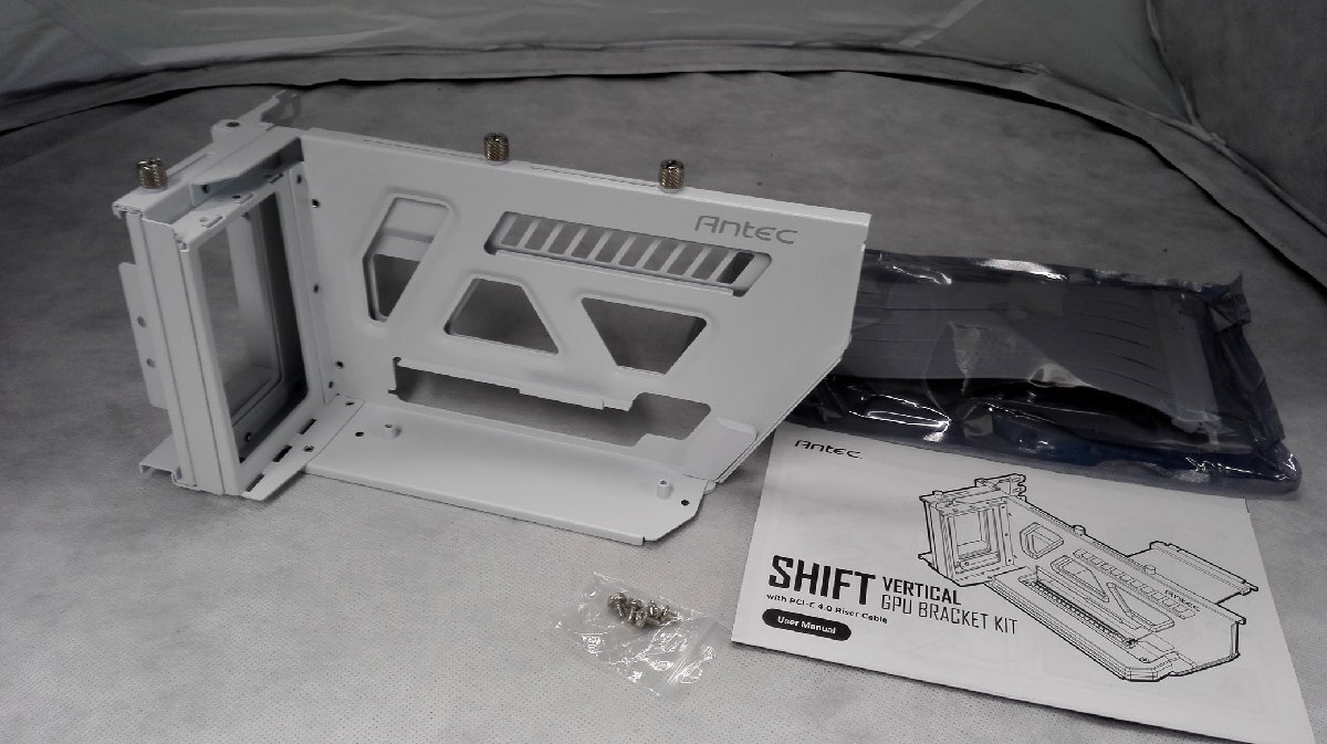 ●SHIFTは、Antec製PCケースに対応する可動式のグラフィックカード縦置きブラケットとライザーケーブルが一体になった製品です。