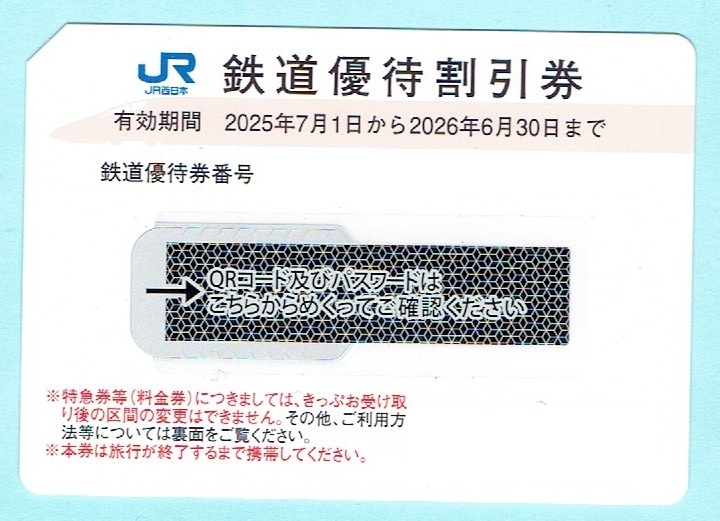 JR西日本 鉄道優待割引券 4枚セットです。