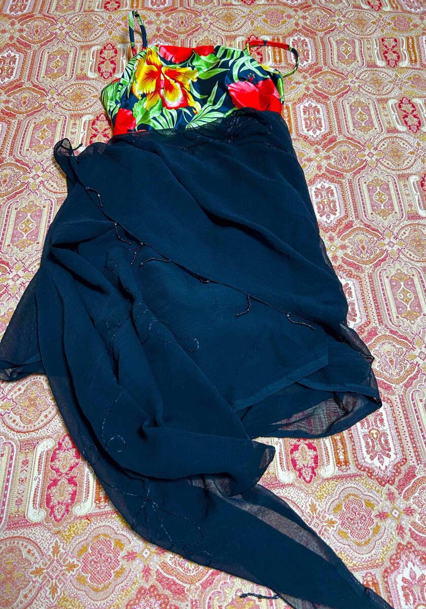 数年前に購入し、一度短時間プールサイドで着用しただけの華やかなワンピース水着。Vienobleの品です。合わせて購入したパレオというか黒の大判のストールもおつけします。