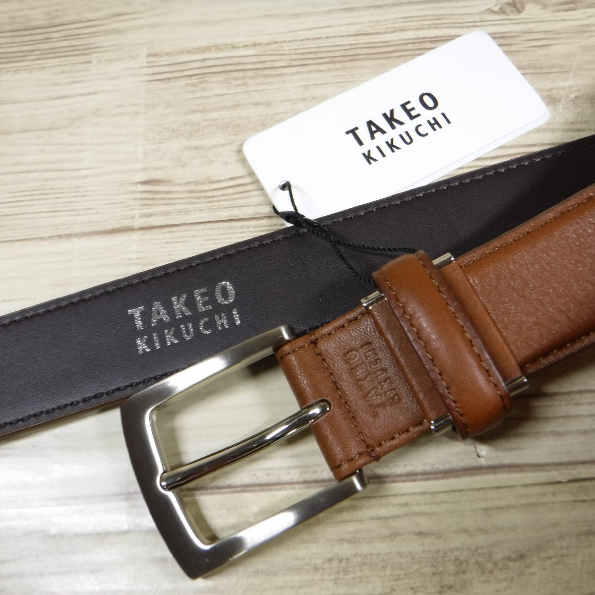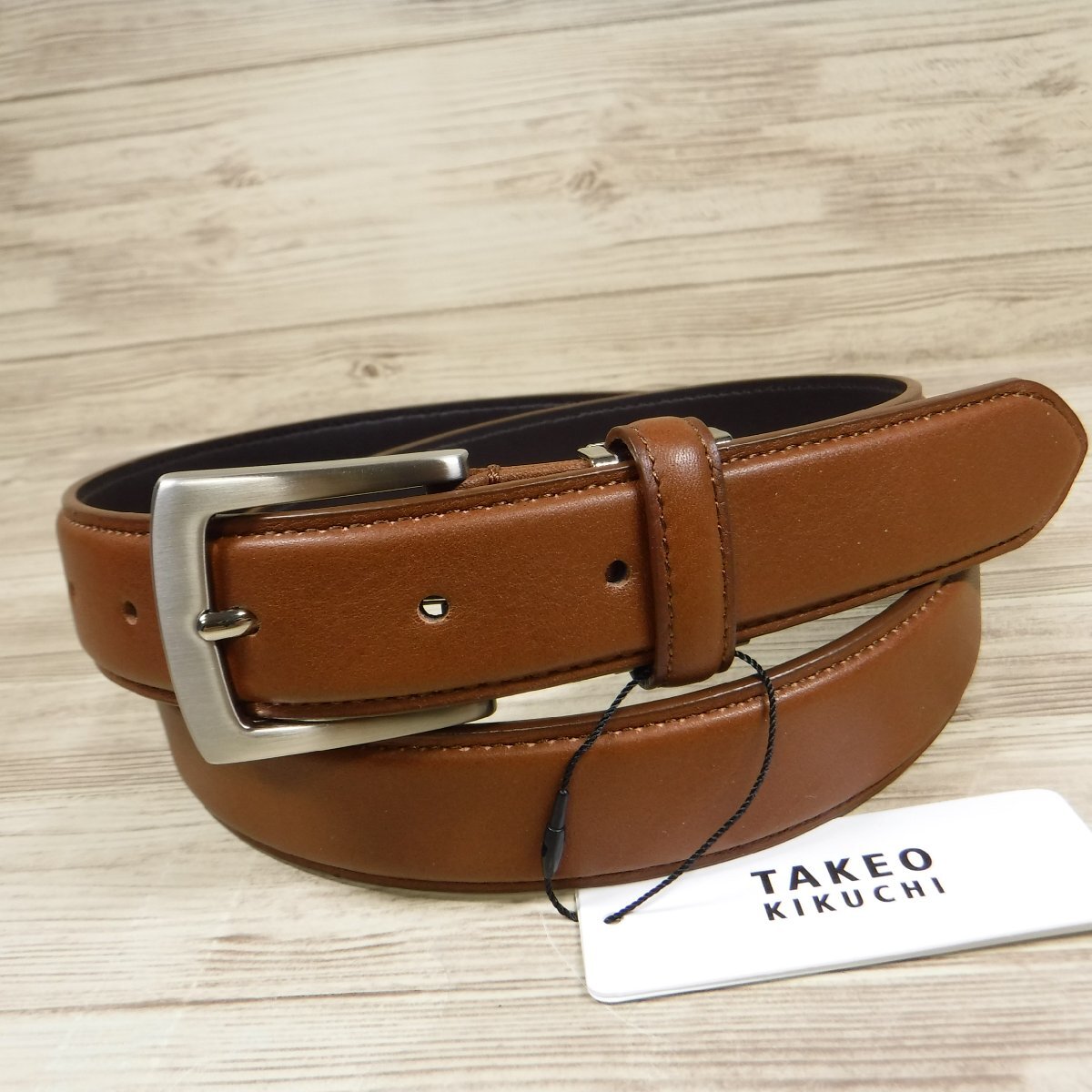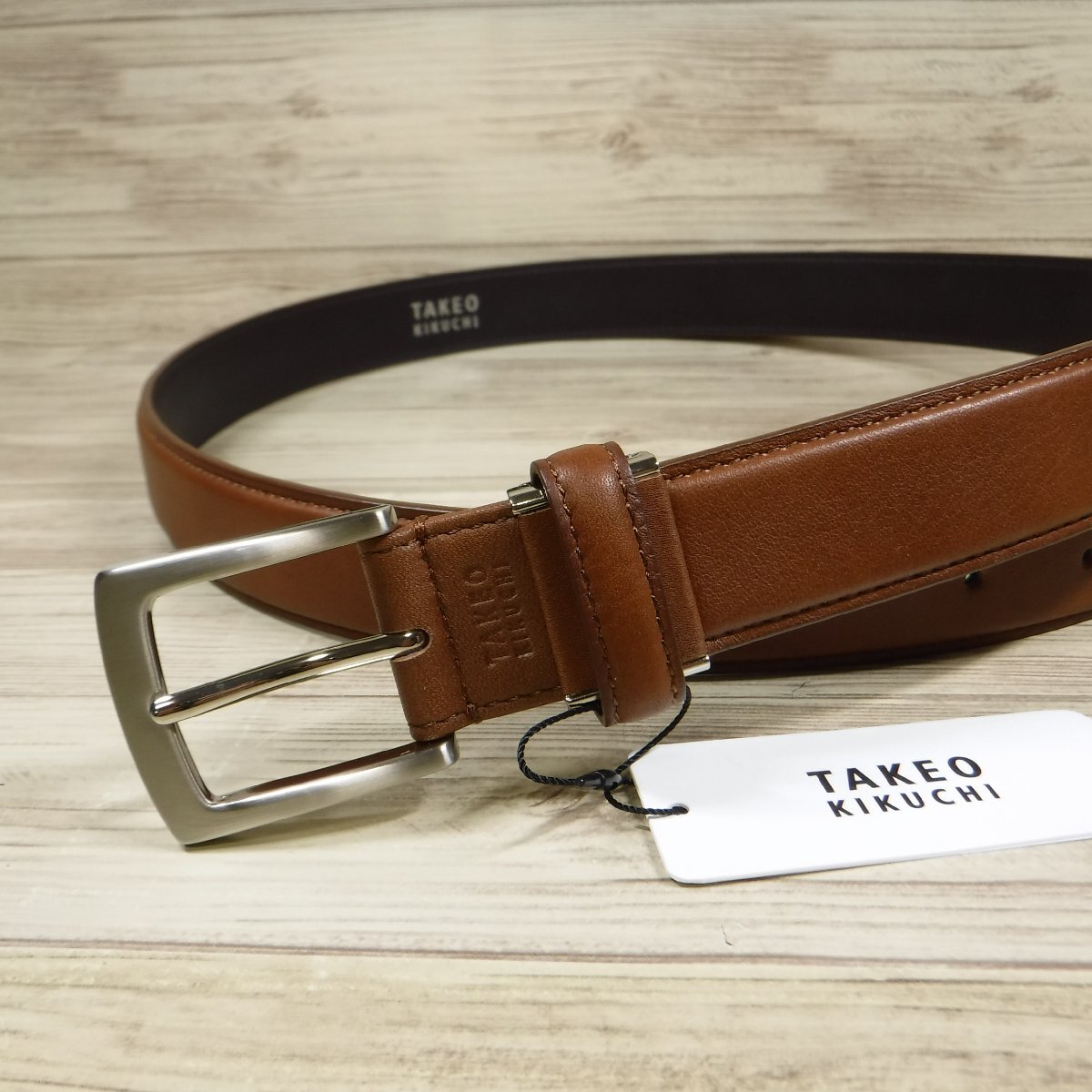 V226 タケオキクチ 新品 茶 ソフト牛革 姫路レザー ベルト 日本製 牛革 ブラウン ビジネス カジュアル TAKEO KIKUCHI