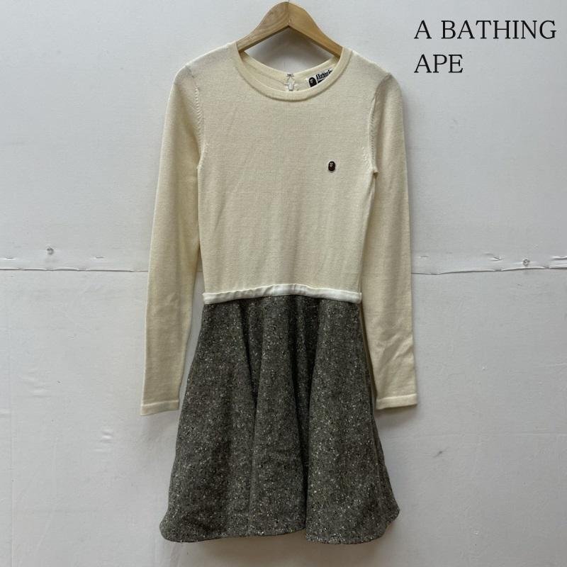 アベイシングエイプ ワンピース 切り替えデザイン ドッキング ひざ丈 長袖 ニットワンピ 1860-235-513 XS