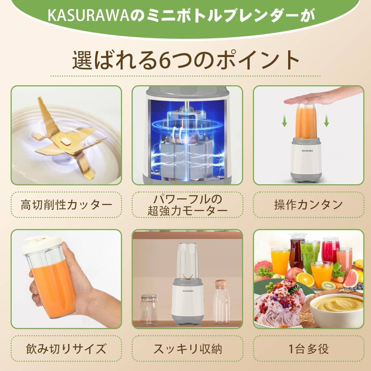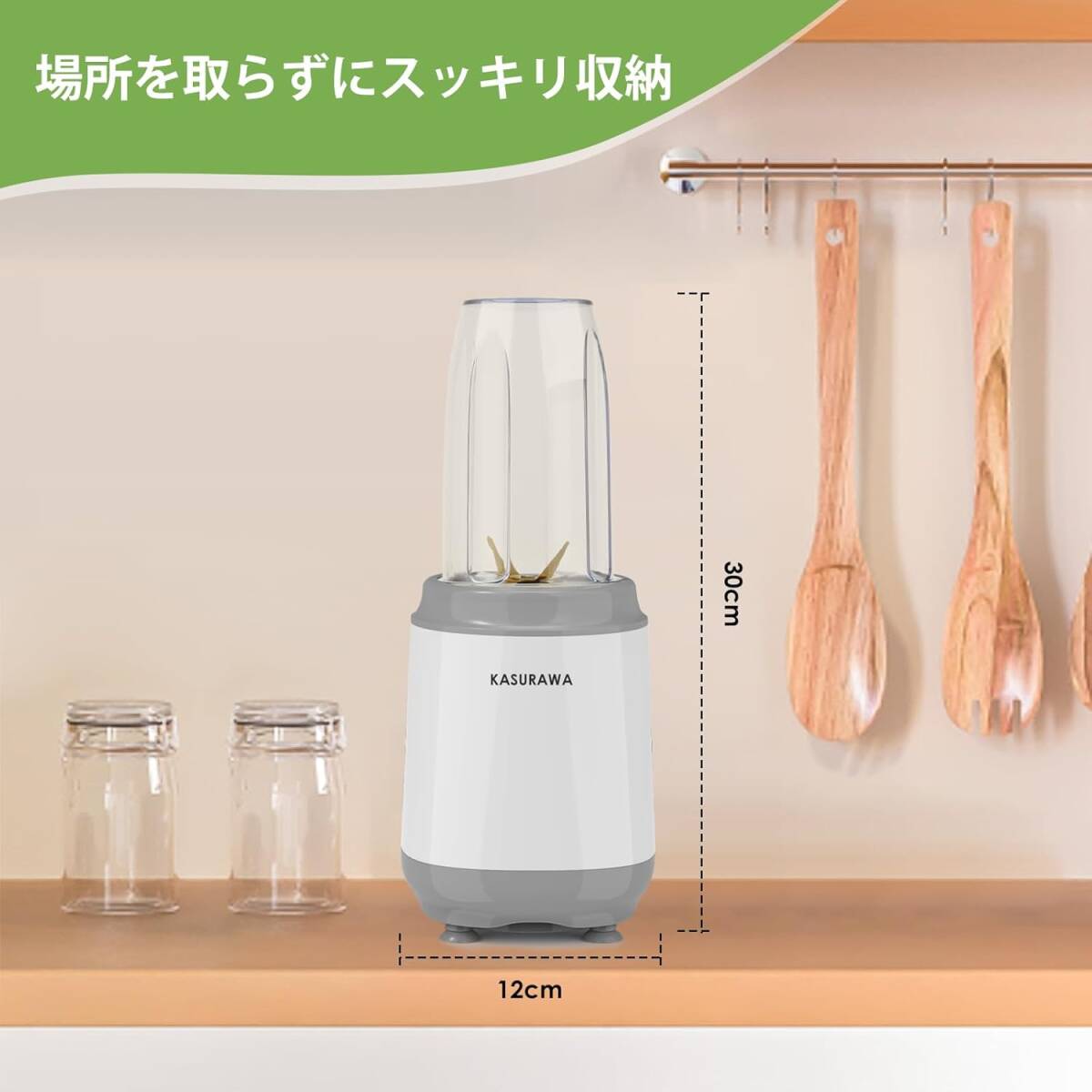 【独自の6枚刃&500Wハイパワーの組合せ】固い素材も撹拌しやすい独自の6枚刃を採用。さらに氷も砕ける500Wのハイパワーモーターでさまざまな冷凍フルーツもそのまま粉砕することができて、よりなめらかな仕上がりのドリンクを作ることができます。 【操作はとてもカンタン!】材料を入れて上から押すだけ!つくったドリンクをボトルのまま飲めるミニブレンダー。 フタをすれば保存や持ち歩きもでき、忙しい毎日でもスムージー習慣が気軽に続けられます。手軽に毎日使いたくなるミキサーです。 【1分間に約30000回高速回転】フルーツや野菜などの食物繊維を細かくカットし、あっという間にスムージーが飲めます。こだわりのスムージーが自宅で手軽に楽しめる。 【キッチン空間に調和するコンパクトサイズ】幅はわずか12cmですので、キッチンに置いていても場所をとらないコンパクトなミキサーです。わずかなスペースがあればスッキリと首脳することができます。 【お手入れやすい】軽くてお手入れしやすいプラスチックボトルなので、注ぐのも洗うのもカンタンです。カッター部分は本体から分解できて、刃の周りなど細かい部分もお手入れできるので、いつも清潔な状態を保つことができます。 L25 |