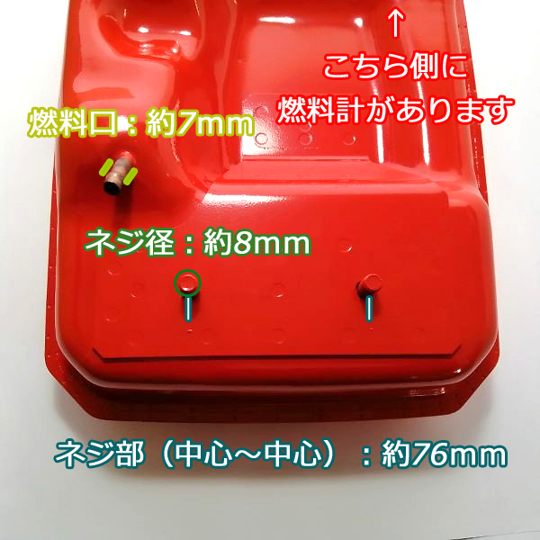 | ■商品名:クボタ GH170用 ガソリンタンク 純正パーツ 新品です。 少し赤みの強いカラータイプです ■サイズ (縦)約230mm (横)約330mm (高さ)約94mm ・ネジ径:約8mm ・ネジ部(中心~中心)約76mm ・燃料口:約7mm ・取付部穴(中心~中心):約110mm ※同型の機種でも形状が違う場合があります。画像にてよくご確認ください。 ■お使いのモニターや照明器具等で実際の色とは若干異なって見える場合もございます。多少の誤差はお許し下さい。 ■写真に掲載のもの以外は原則付属致しませんのでご注意下さい。 ■その他の燃料タンク周辺の部品は ![]() ご覧頂けます。 ■他にも新品の修理パーツ多数取り扱っております ⇒コチラから ※「○○」に合うかなどの質問につきましてはお答えできない場合があります。 形状やサイズにつきましては、出来るだけわかりやすくご返答いたします。 ご不安な場合は一度ご連絡をお願いします。 |