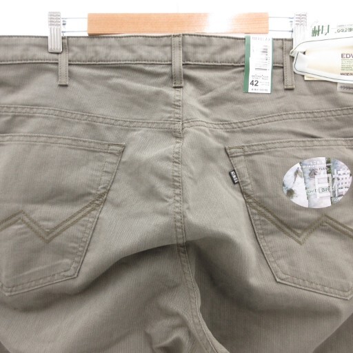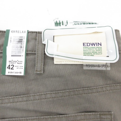 未使用品 エドウィン EDWIN タグ付き 404 クールフレックス 白樺ブレンド ストレートパンツ ヘリンボーン柄 大きいサイズ 42