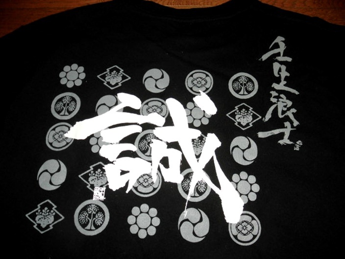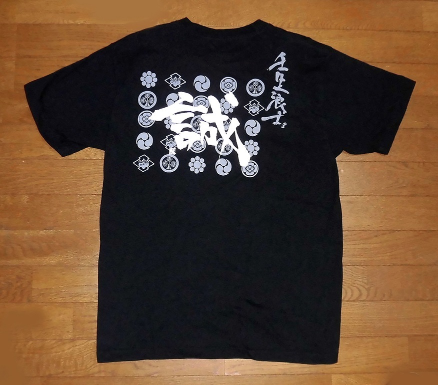 新選組 Tシャツ 壬生浪士 誠 半袖 厚手 コットン 漢字 和柄 家紋 BLK L 使用少 美品/近藤勇 土方歳三 侍 みぶろ 旗印 武士 戦国武将 時代劇