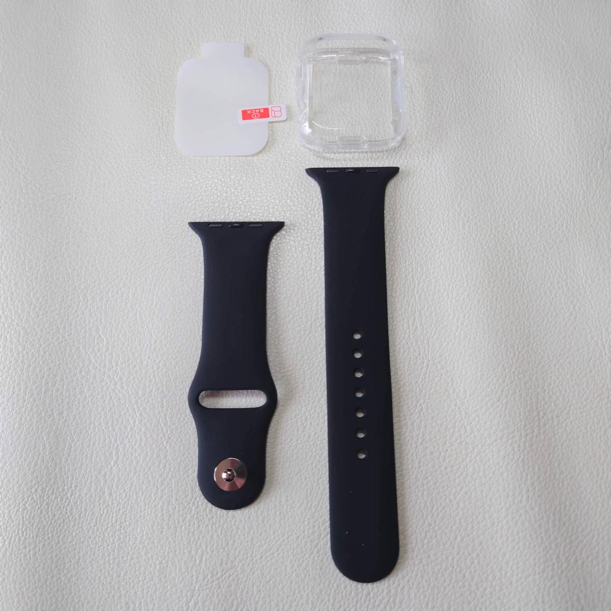 【お買い得3点フルセット】Apple Watch 41mm 対応 スポーツバンド(ブラック)+クリアケース+画面フィルム アップルウォッチ Series7 8