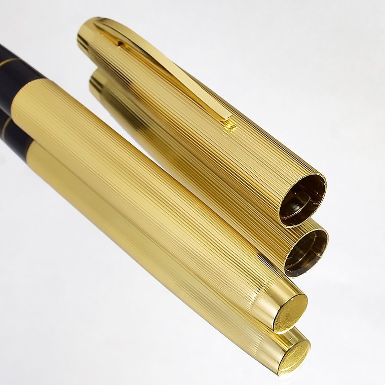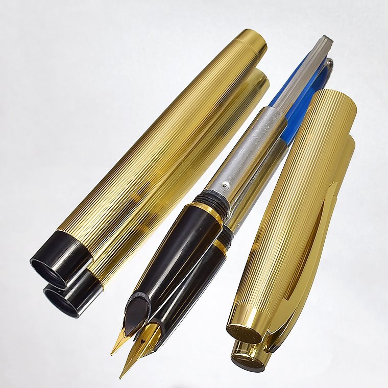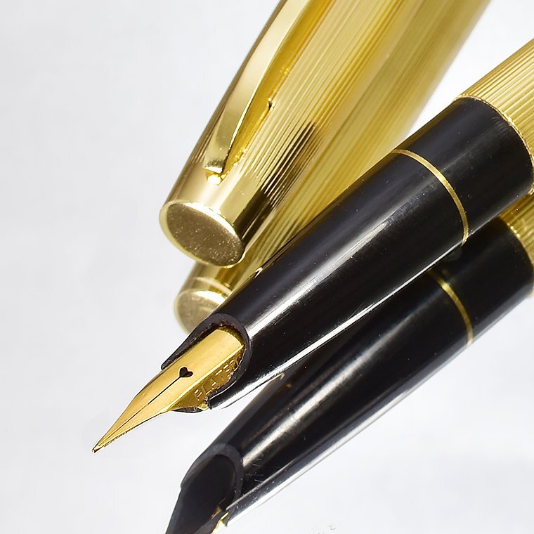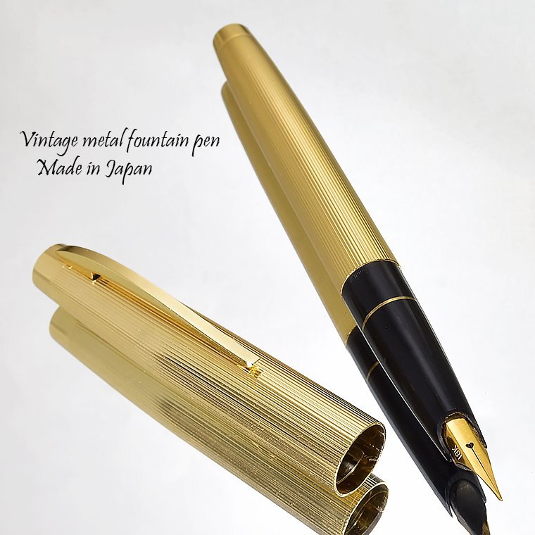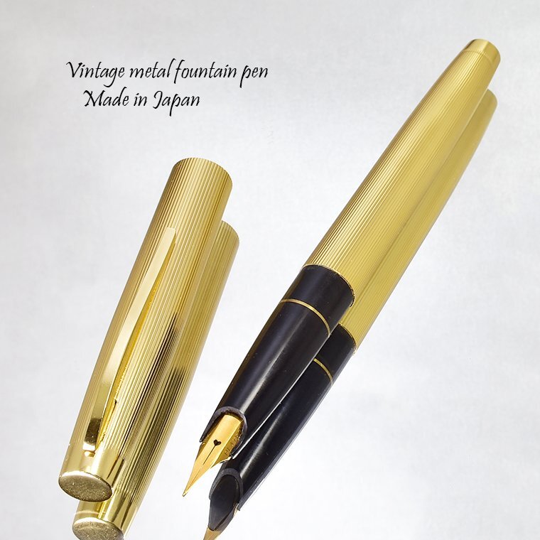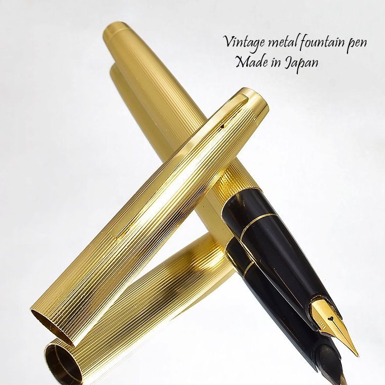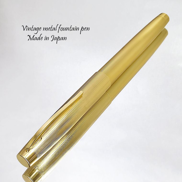 | ビンテージ 万年筆 金属製 珍しい爪型ペン先 18金メッキ EF(極細)程度 中押し式 エボナイトペン芯 レストア済み 希少な逸品 Made in JAPAN 日本製 ![]() こちらは、おそらく戦後の1950年代に国内で製造された貴重なビンテージ万年筆です。 終戦を迎えた80年程前、かつて日本の下町などでたくさんの万年筆工場や加工場があった時代、 そういった工房での職人さんが手掛けた過去の貴重な万年筆ご紹介いたします。 ![]() キャップ、胴軸ともにゴールドカラーの金属製で、 ストライプ模様がとても洗練されたデザインとなっています。 重さは11gと軽量ですので、おそらくアルミ製ではないかと思われます。 ![]() 今回出品のペン先は珍しい爪型のEF(極細)です。 側面に「18K」と刻印がありますが、反対側に「PLATE」とありますので、 こちらは金属に18金メッキを施した「18KGP」となります。 メッキながらも柔らかくしなやかに作られていますので、 ストレスなく日本製ニブの筆記を楽しめます。 ![]() インクの吸入方式は【中押し式】です。 【コンバーターが固定】されており、ペン先をインク瓶に浸けてから チューブの上のプレートを数回押して吸入します。 使いやすくお好きなインクを吸入してお楽しみいただければと思います。 ![]() ビンテージ万年筆の魅力は、時代を反映した独特なデザイン、現在では入手困難な素材。 そして、時間の経過とともに増すビンテージの風合いではないでしょうか。 使い込む程手に馴染み、愛着が湧いてくる楽しさは、ビンテージ万年筆でしか味わう ことができません。 貴重なビンテージ万年筆との出会いも一期一会です。 是非ご覧ください。 ![]() ************************************************************************* ≪万年筆詳細≫ ニブ : 金属製 爪型 ※日本製 ペン芯 : エボナイト サイズ : EF(極細)程度 機構 : 中押し式コンバーター固定 材質 : 金属製 長さ : 約132mm 太さ : 約10.4mm(軸)/11.1mm(キャップ) 重さ : 約11g 付属品 :簡易発送用紙ケース 状態 :ニブ調整済み、チューブ交換済み ※こちらの商品は金属部などに経年変化が見られます。(僅かなキズやスレあり) ご使用に問題はございませんが、稀少なビンテージ品の特性として ご理解の上、ご入札をお願いいたします。 ※モニターの環境により、画像と実物の色合いが若干異なる場合がございます。 予めご理解・ご了承の上、ご購入お願い致します。 ※こちらのペン先は18金ではなく、18KGP(金メッキ)となります。 ************************************************************************ |