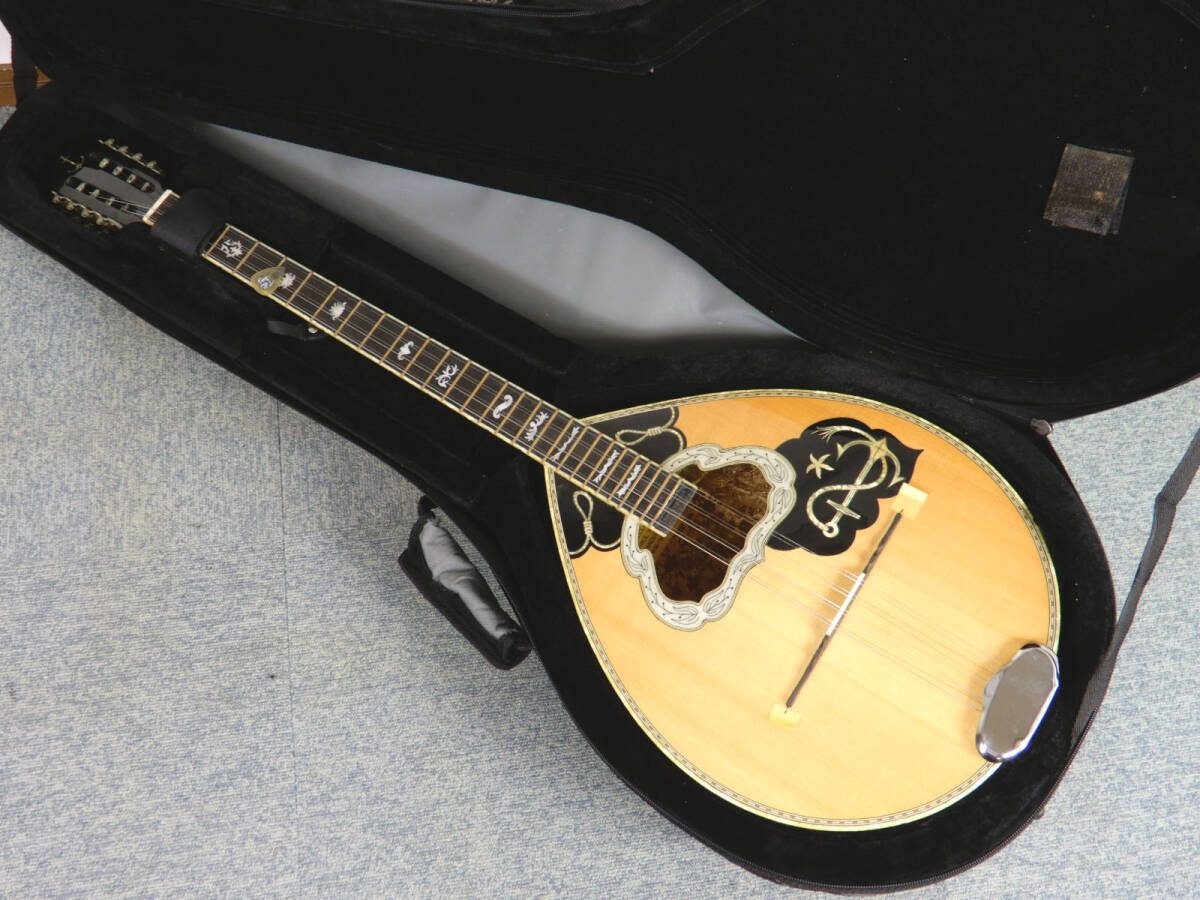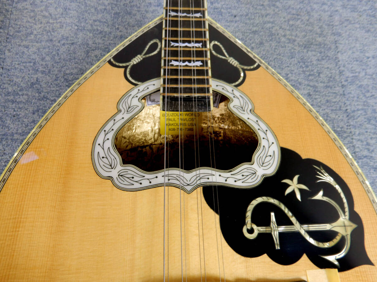 希少 民族楽器 ギリシャ ブズーキ ◆ Bouzouki ケース付き 予備のブリッジ/弦セット付き 装飾がキレイ美品