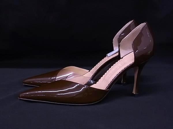 ■美品■ VERO CUOIO ベロクオイオ パテントレザー×PVC ヒール パンプス サイズ 35 1/2 (約22.5cm) 靴 シューズ ブラウン系 DK0527