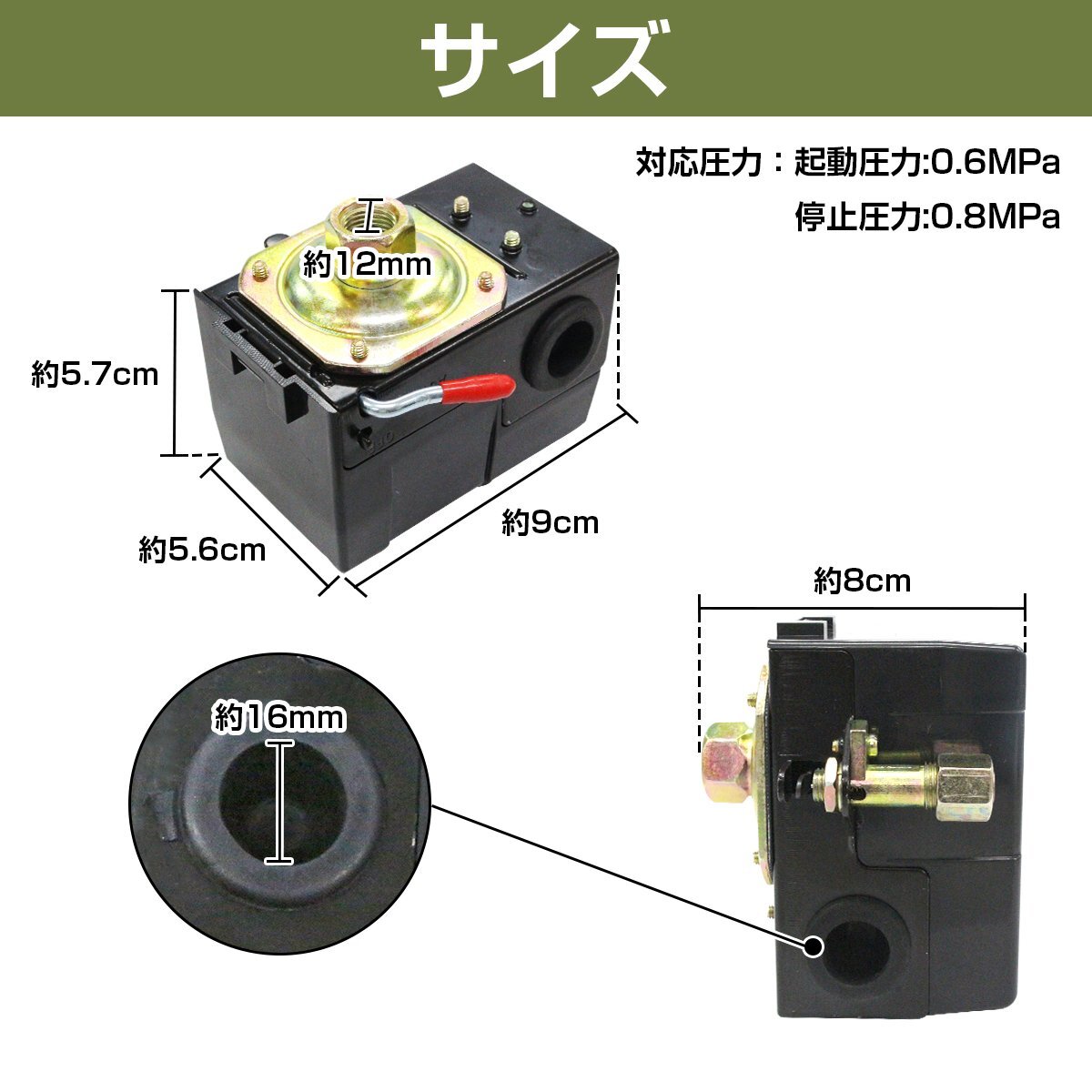コンプレッサー 圧力スイッチ 1ポート サイドスイッチ 対応圧力 0.6Mpa 0.8Mpa エアー プレッシャースイッチ 100v 200v 220v