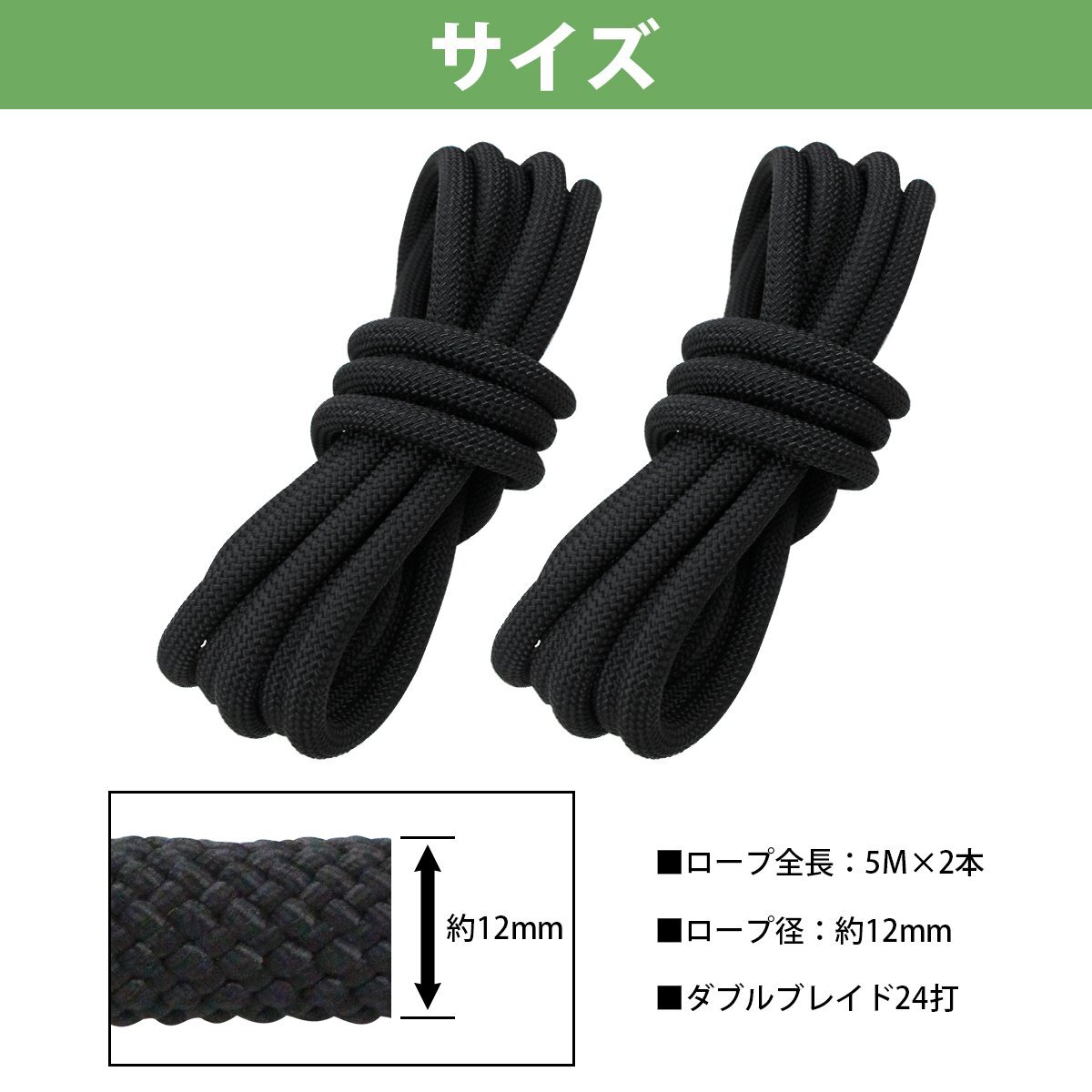 24打 12mm 5m 2本セット 計10m 係留ロープ フェンダーロープ ダブルブレイド 黒/ブラック マリン ロープ 船 係船 12ミリ