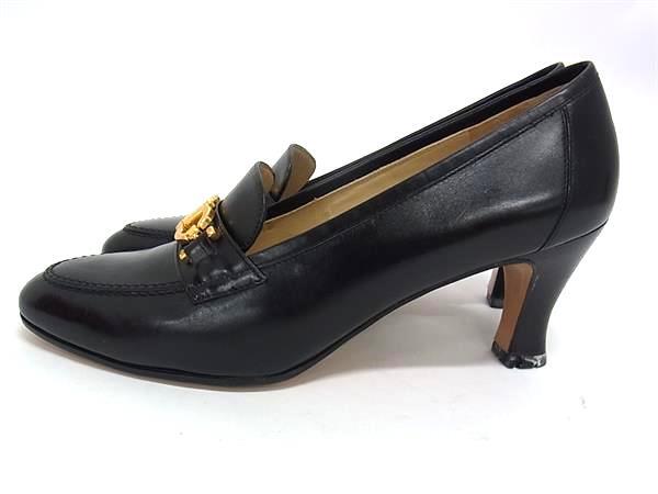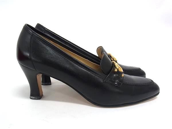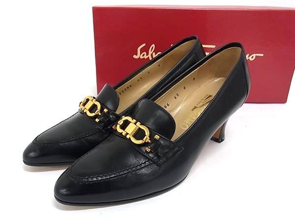 Salvatore Ferragamo フェラガモ ダブルガンチーニ レザー ヒール ローファー サイズ6 (約23.5cm) 靴 シューズ ブラック系 DK1874