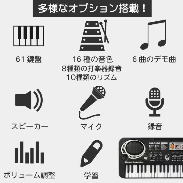電子キーボード 61鍵盤 マイク付き 本格 電子ピアノ 和音対応 録音機能 16種類 楽器 プレゼント 練習 送料無料- 80S◇ 61鍵盤キーボード