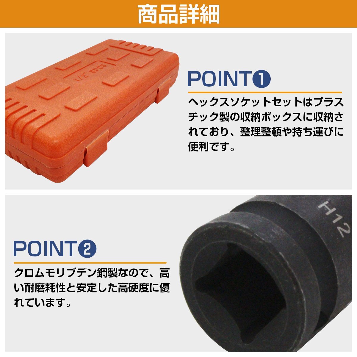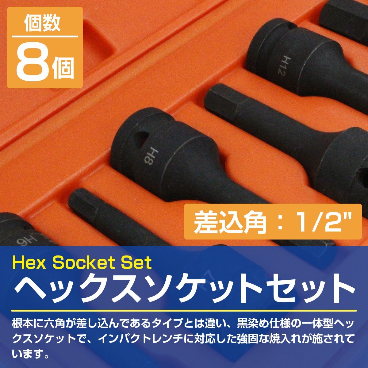 1/2 ヘックスソケットセット インパクトレンチ対応 六角レンチ 焼入れ 作業 固定 工具 日曜大工 DIY