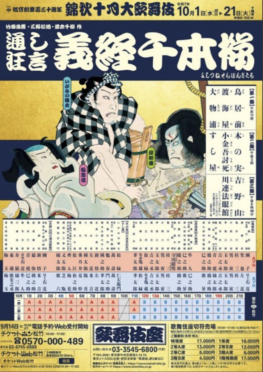10月歌舞伎座義経千本桜10月18日土曜日第3部一階最前列2席