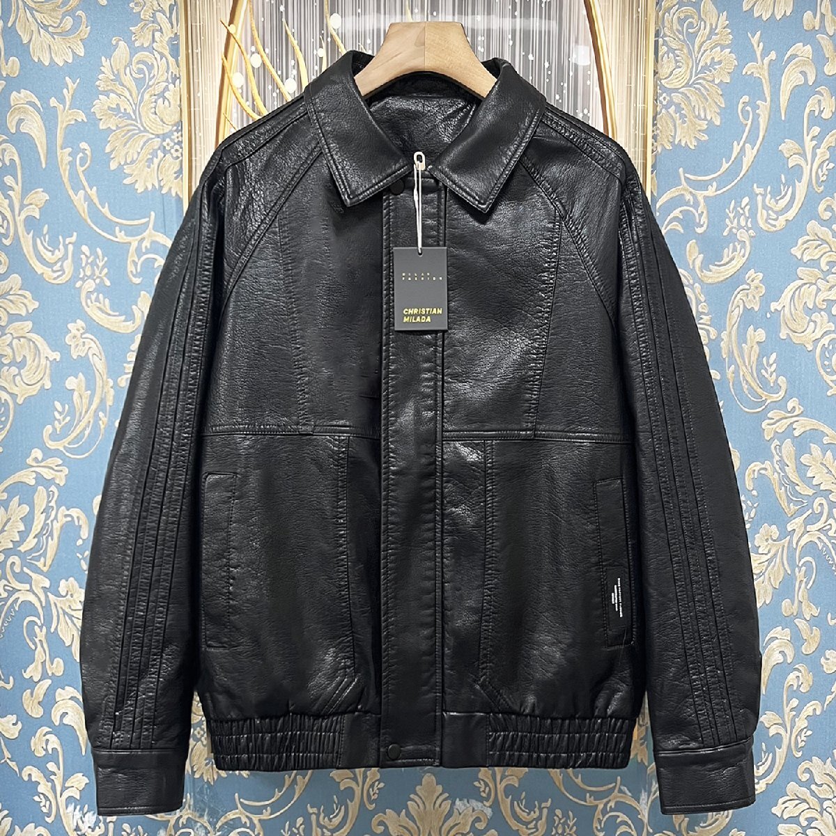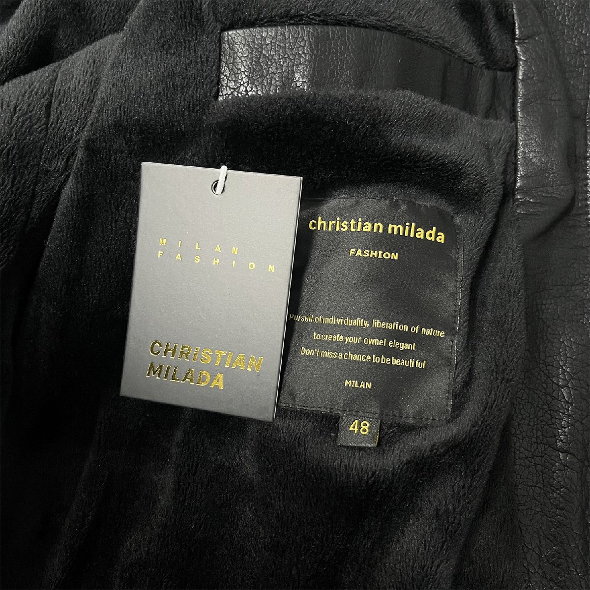 定価13万★christian milada・ミラノ発・レザージャケット★牛革 本革 裏起毛 光沢 革ジャン ライダース アウター バイク用 秋冬 2XL/52