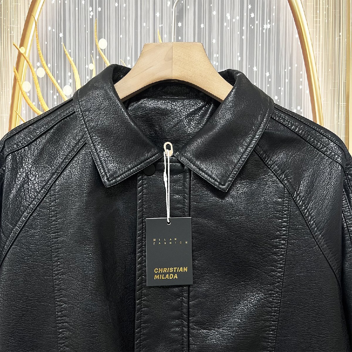 定価13万★christian milada・ミラノ発・レザージャケット★牛革 本革 裏起毛 保温 光沢 無地 革ジャン ライダース アウター バイク用 秋冬 2XL/52サイズ