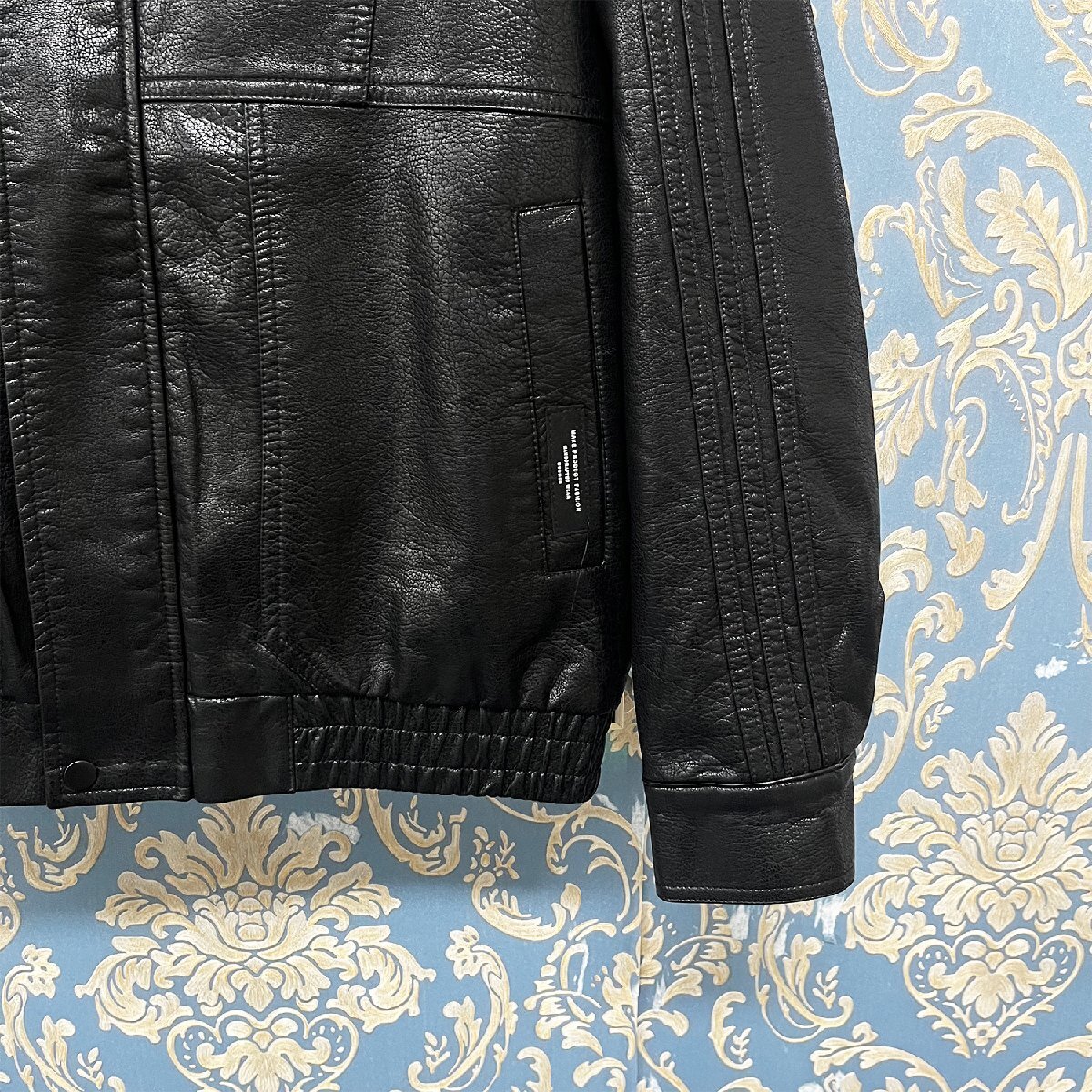 ミニマルなシルエットや無地のデザインで、流行に左右されずに、長くご愛用いただけるレザージャケットです。裾部分にはゴムを施しており、自然にフィットしつつ、シルエットに程よい引き締め感をプラス。袖に同じ色の3本のラインを入れることでスポーティ感をプラスしています。両脇にある便利なポケット付いて、携帯電話や財布等の貴重品をしっかり収納できます。