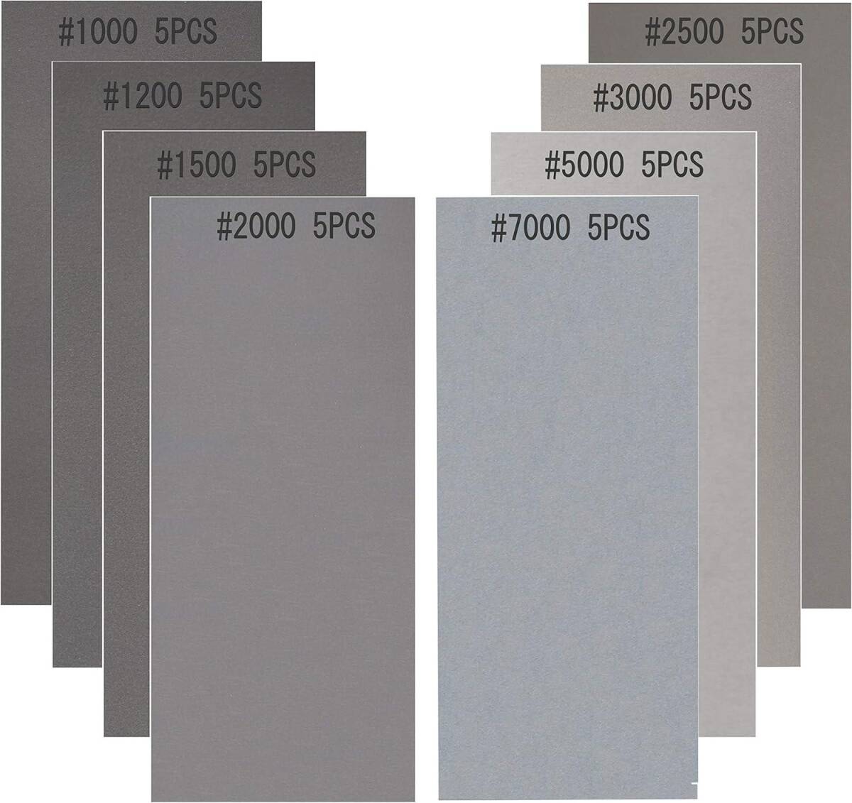 【番手 枚数】 8種類のグリット 合計40枚入り。#1000 #1200 #1500 #2000 #2500 #3000 #5000 #7000 各5枚。研磨効果はとても良いです。