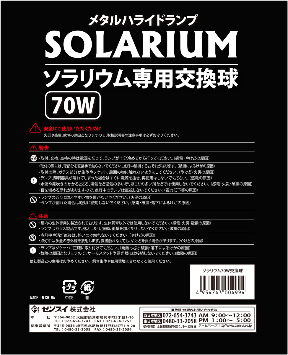 ★ ソラリウム専用交換球70W ゼンスイ ペットペットゾーン 爬虫類用メタルハライドランプ 消費税0円 新品 ★
