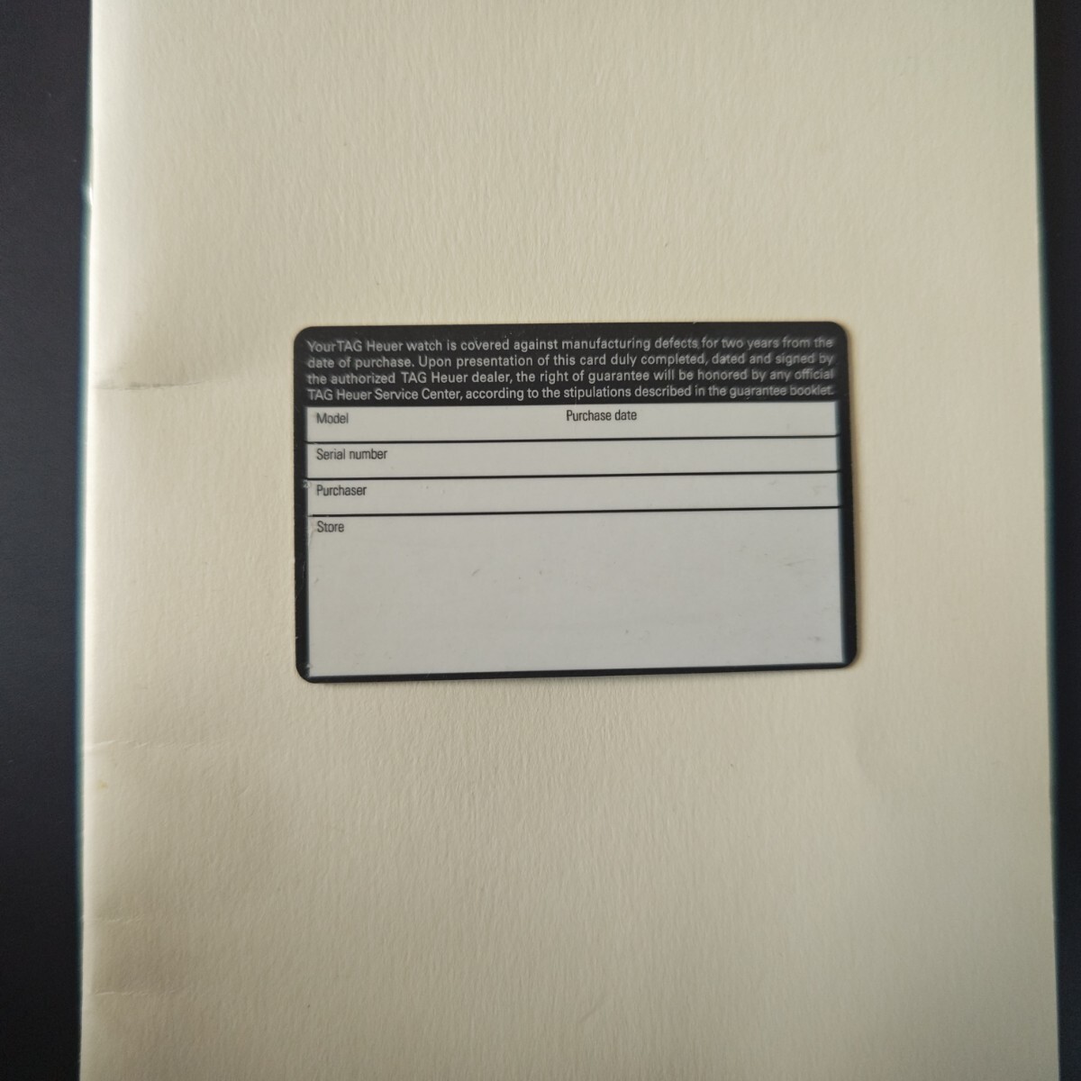 TAG Heuer タグホイヤー未記入保証書カード 引き出し保管品、折り目なく綺麗です。