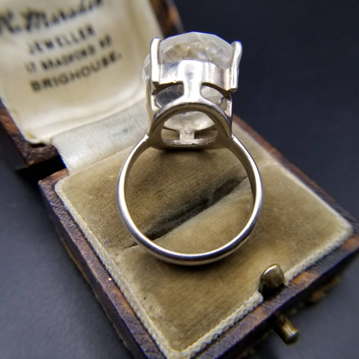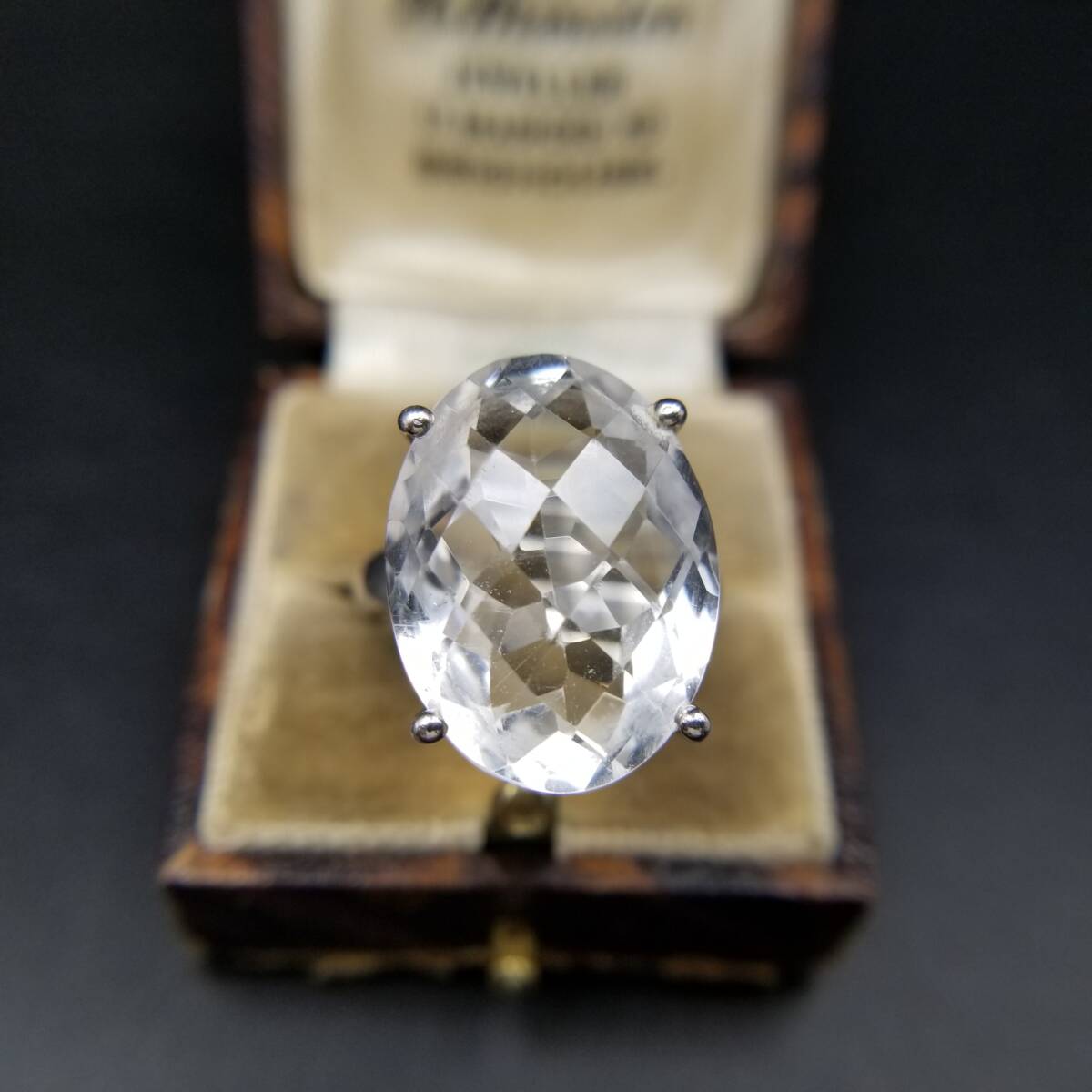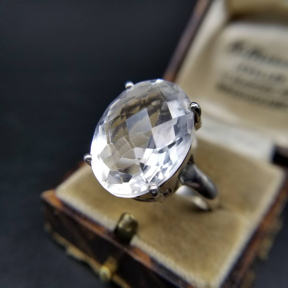 大粒 クリアストーン オーバル ファセット 925 シルバー ヴィンテージ リング 指輪 銀 ゴージャス 存在感 ステートメントジュエリー R16-R