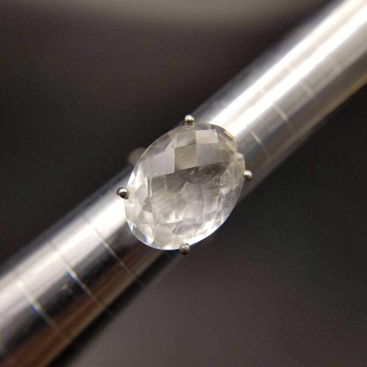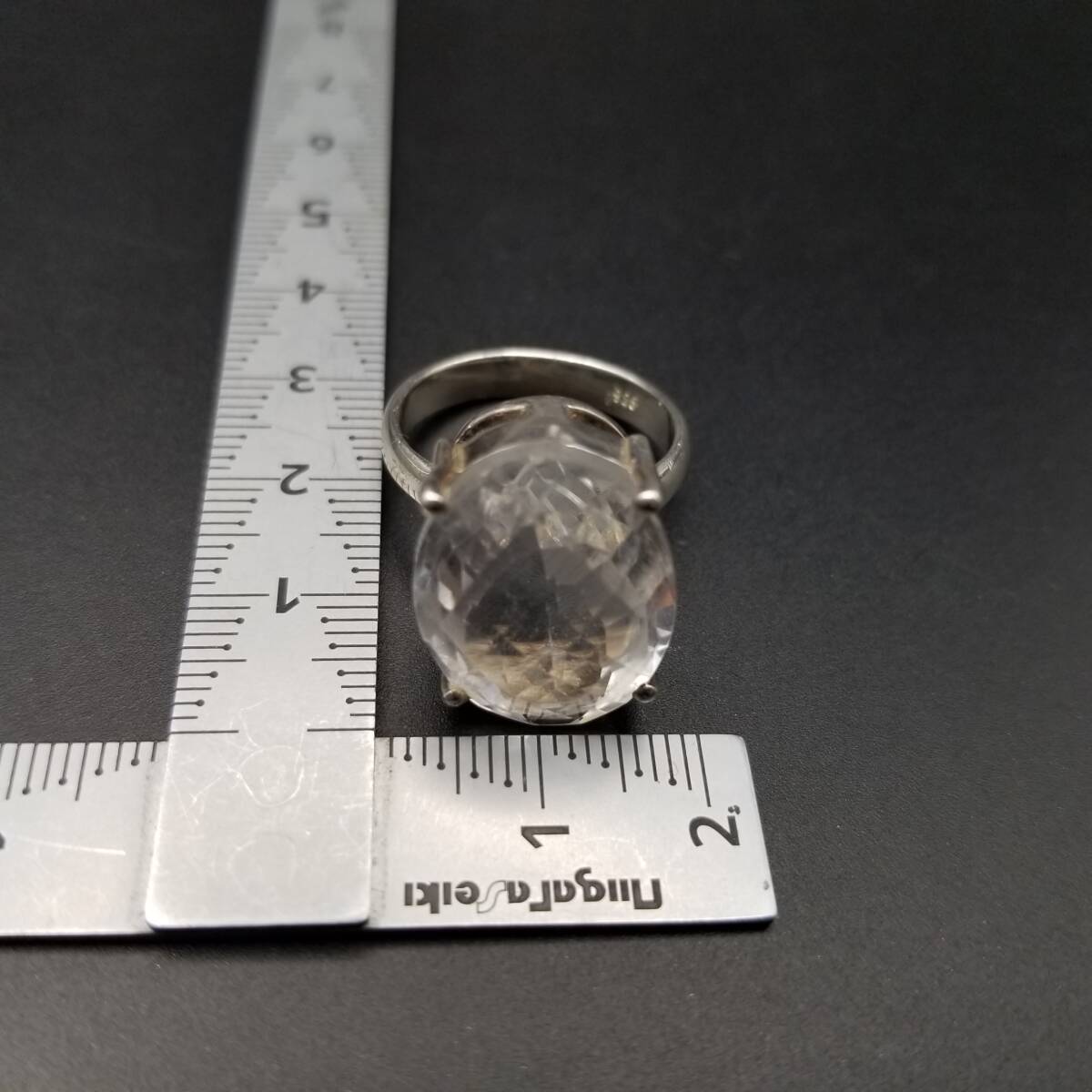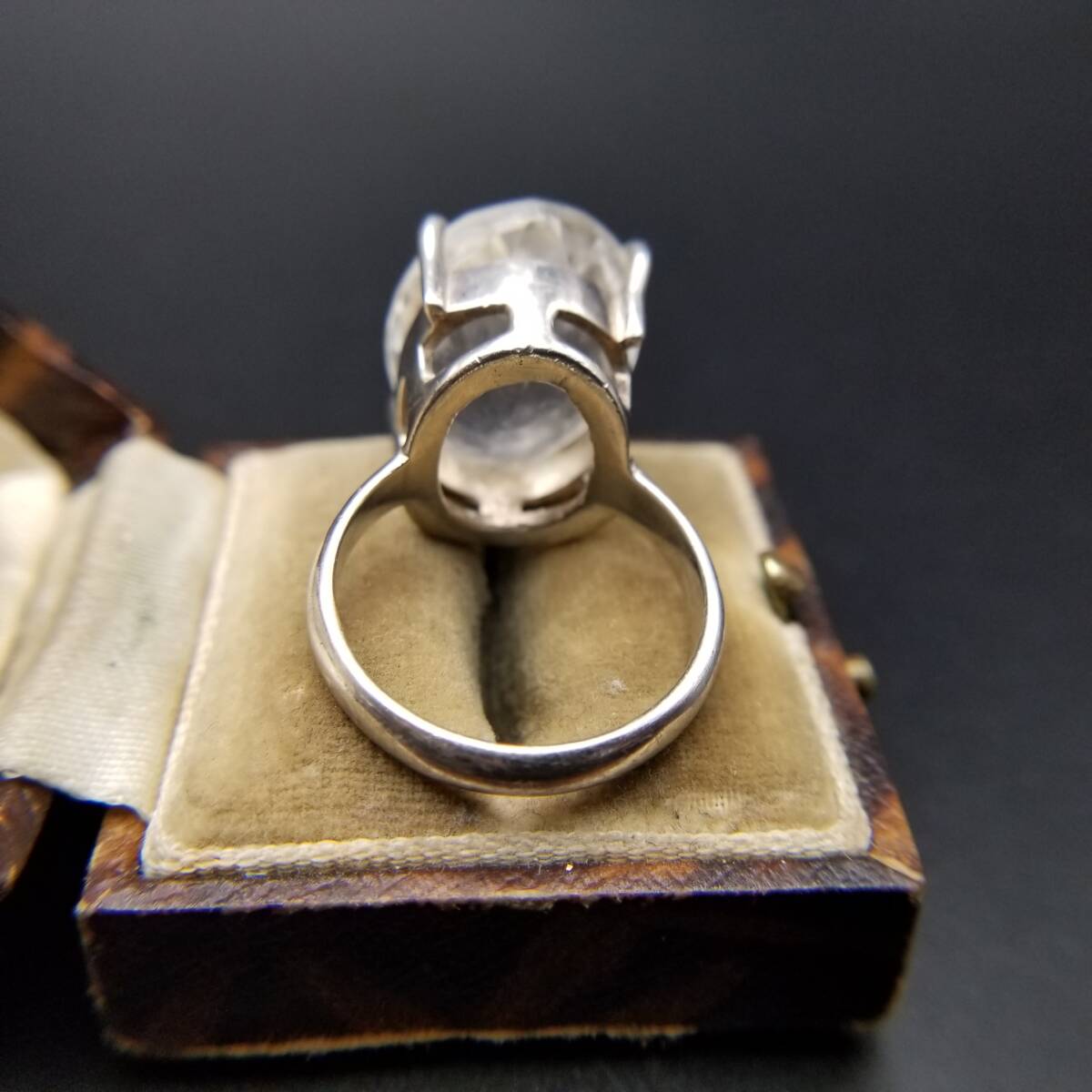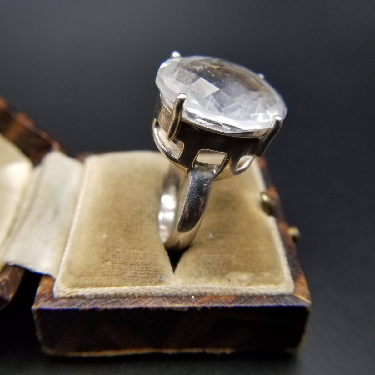 大粒 クリアストーン オーバル ファセット 925 シルバー ヴィンテージ リング 指輪 銀 ゴージャス 存在感 ステートメントジュエリー R16-R
