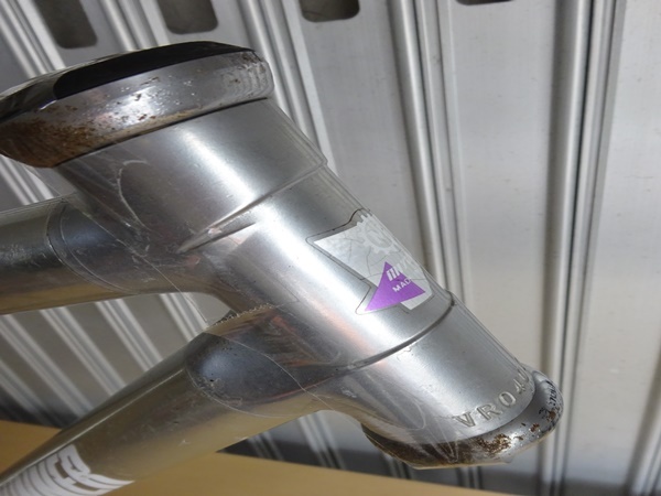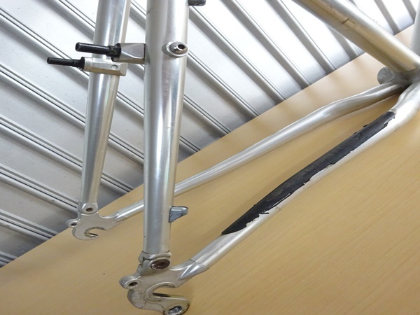 傷サビ汚れがあります。サイズは実測で、トップチューブ(C-C)545mmのシートチューブ(C-T)415mmになります。発送は佐川急便のみの対応で、送料は全国一律2980円になります。