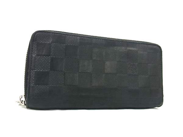 1円 LOUIS VUITTON ヴィトン N63300 ダミエアンフィニ ジッピーウォレット ヴェルティカル ラウンドファスナー 長財布 ブラック系 FT1608
