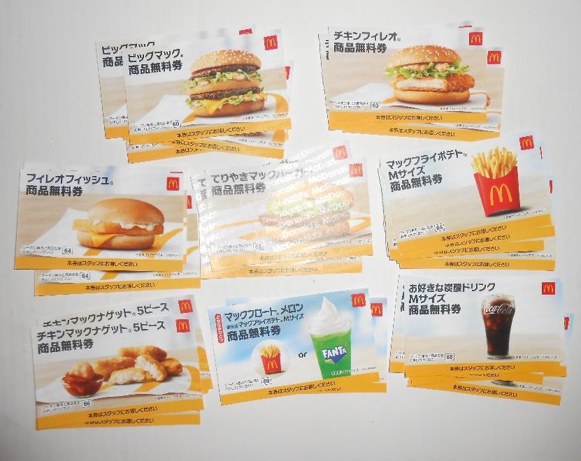 マクドナルド★無料券 30枚★ビッグマック・チキンフィレオ・フィレオフィッシュ・てりやきマックバーガー・ポテト・ナゲット・フロート他