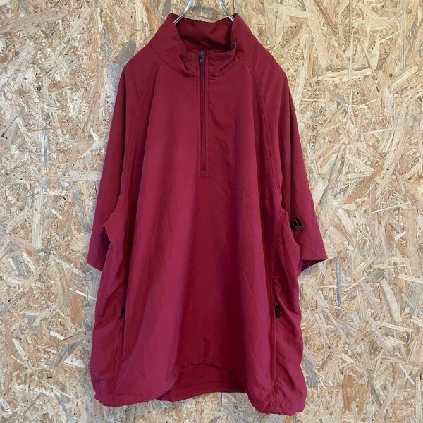 [KWT5334] adidas アディダス ハーフジップ半袖Tシャツ メンズ レッド XL ポス
