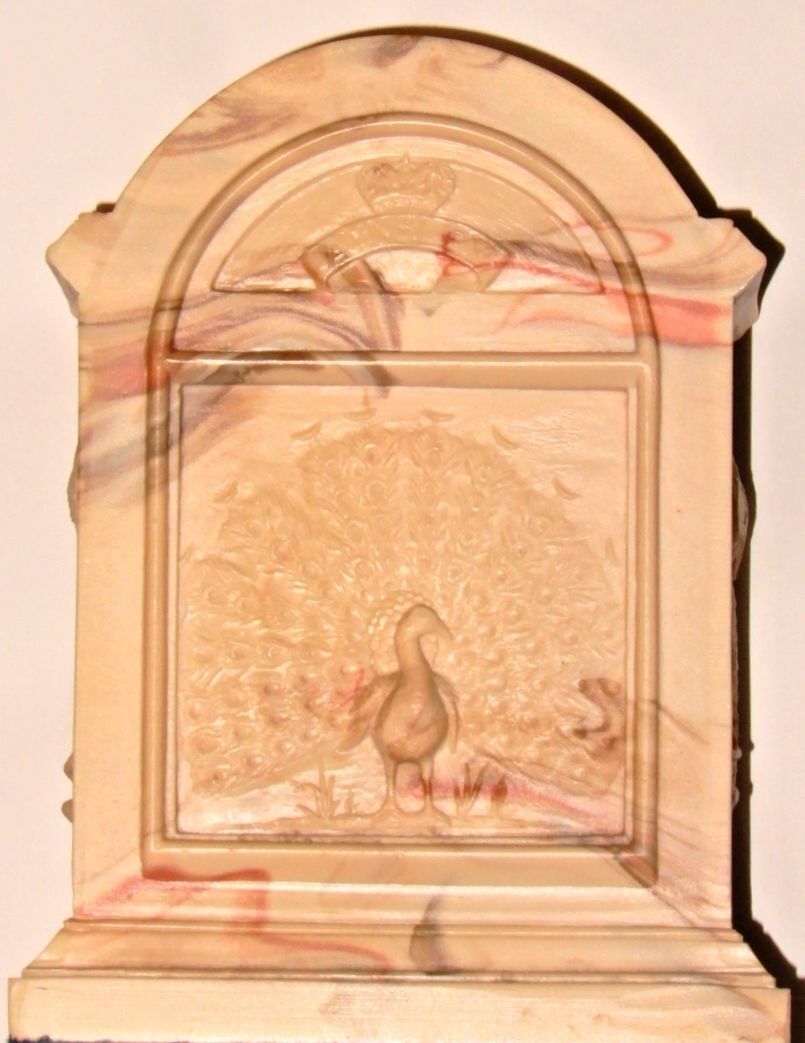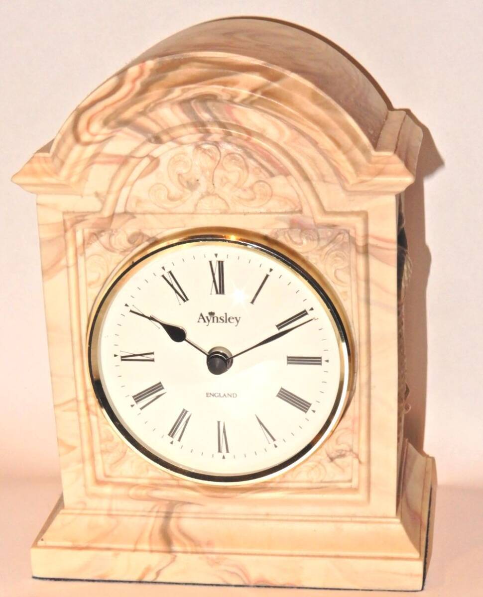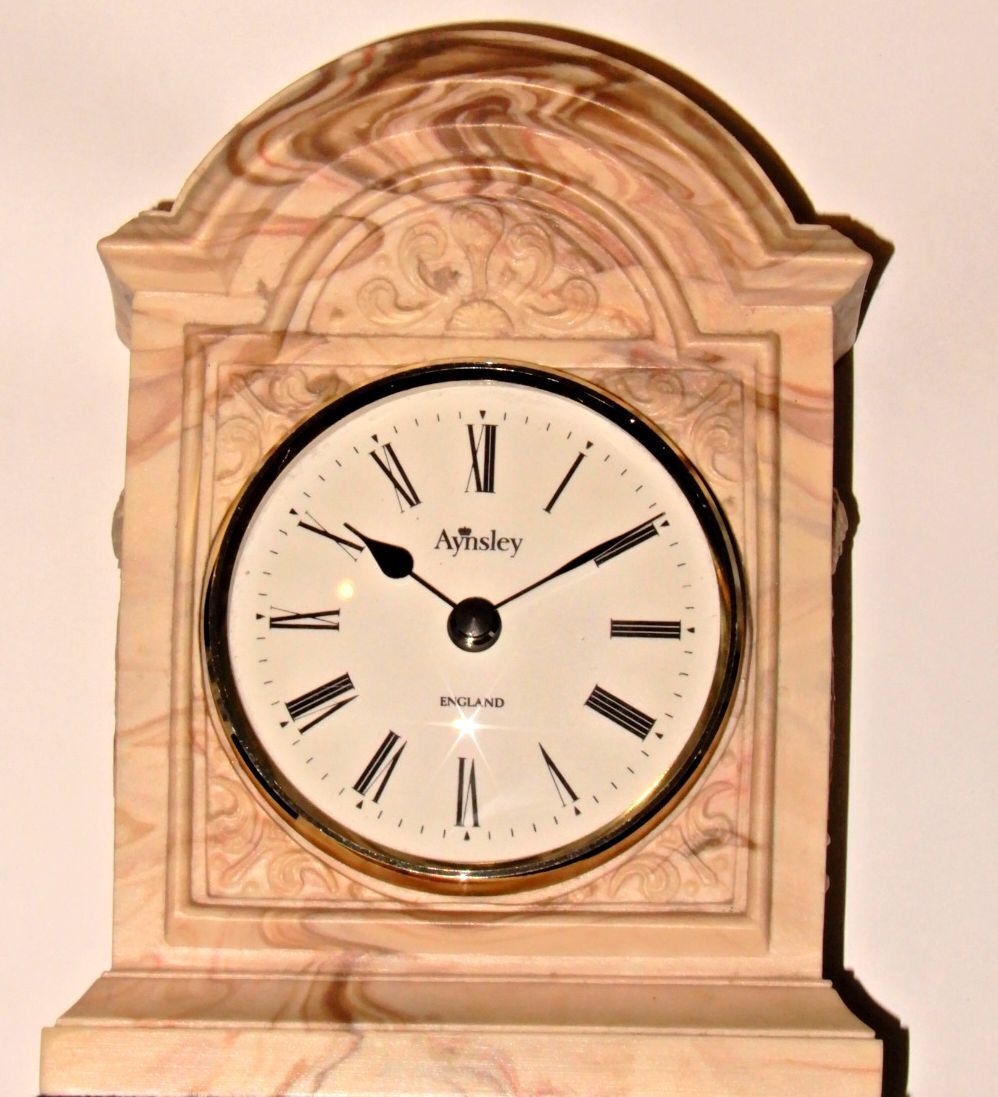 美品 ビンテージ 英国 陶器 ブランド Aynsley エインズレイ マーブルカラー 鳥 孔雀 彫刻 マントル マンテル型 クロック クォーツ式 置時計