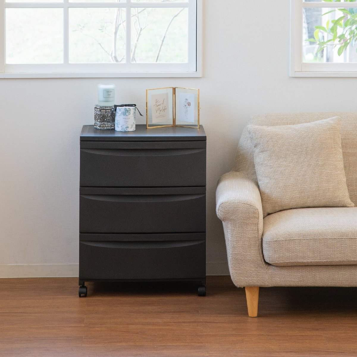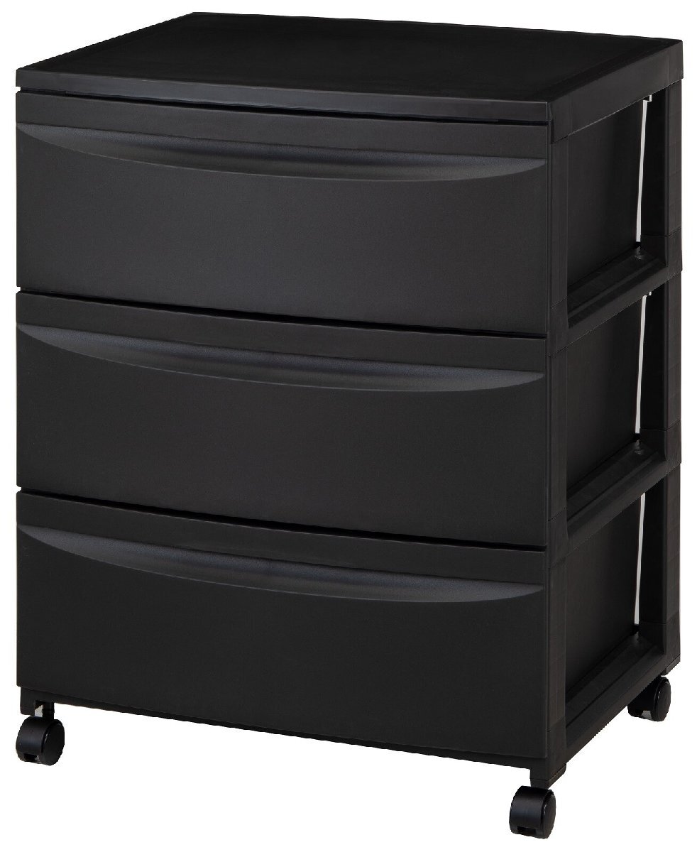 即決可@新品[日本製収納ケースプラスチック]キャスター付収納ワイドチェスト3段ルーセント543 引き出し式収納ケース/ダークグレー | ||||||||||||