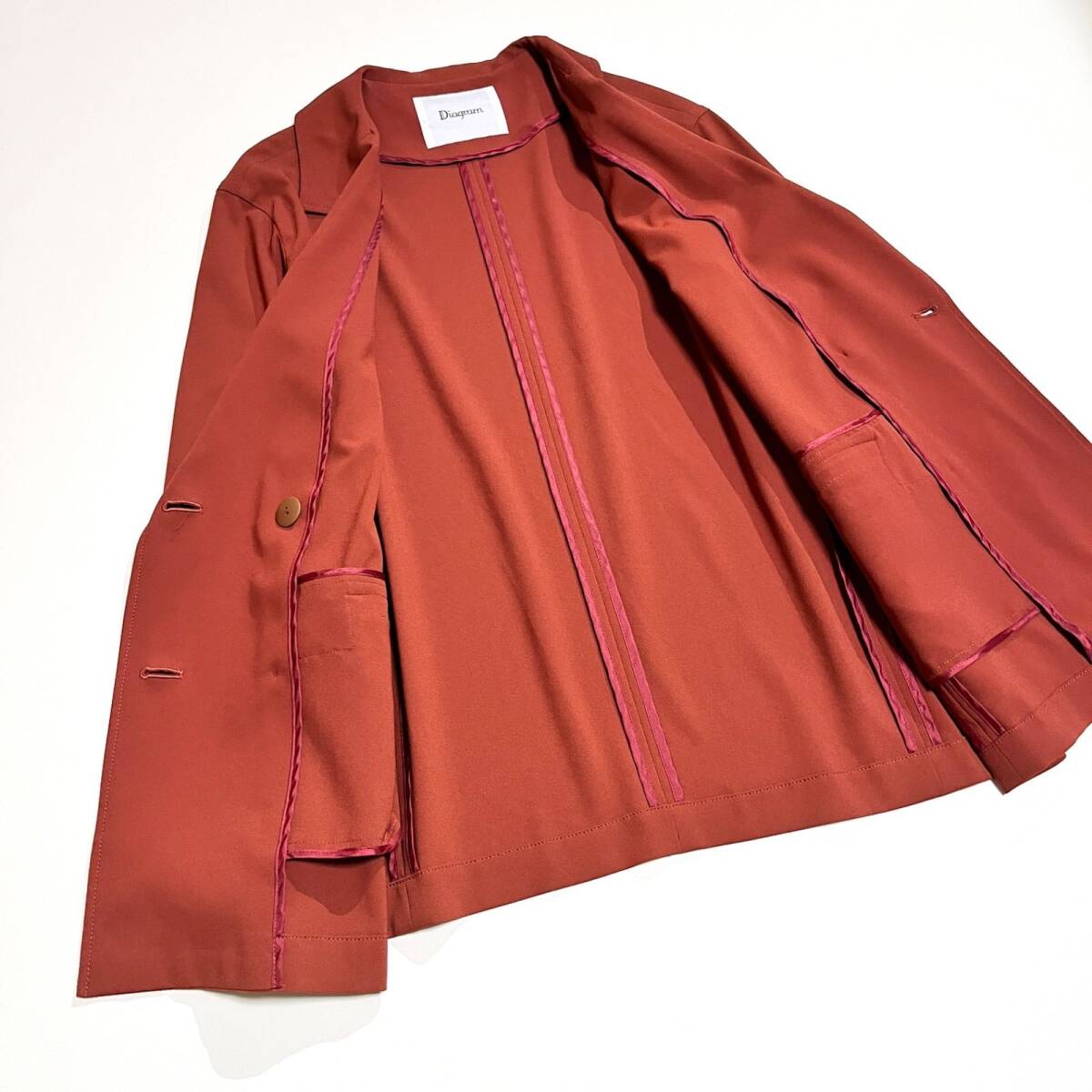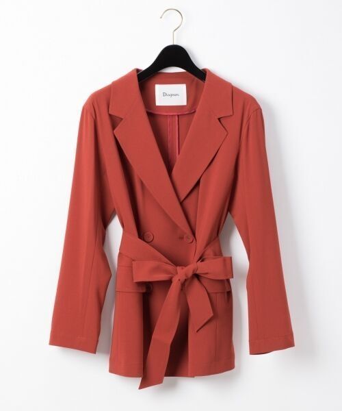 テーラードジャケット ベルト付き トリアセダブルジャケット ダブルボタン 薄手 ライトアウター ライトジャケット 秋カラー 秋色