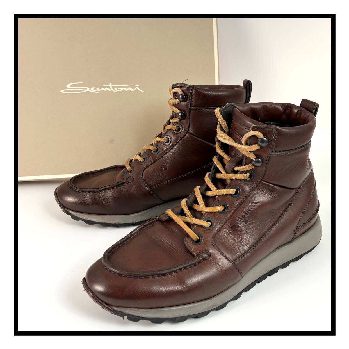 Santoni [サントーニ] モカシン レースアップブーツ ワークブーツ カジュアル レザー ダークブラウン 茶色 UK6 25cm シューズ イタリア製