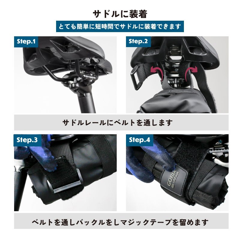 サドルバッグと違いくるくる巻く事で無駄なスペースを失くして効率の良い収納ができます。 中身の収納スペースも区分けされてあり、すぐにどこに何があるかを判別できます。 このサイズでパンク修理類やチューブなどを収納する事ができる。 生地も丈夫で柔軟性、耐久性と防水性があり屋外で使用するのに扱いやす素材となっています。 装着も簡単でサドルバッグとして、またフレームにも装着可能です。 ロードバイクやクロスバイク、MTB、ミニベロ、グラベルなど様々な自転車に! [コンパクトサイズ] くるくる折りたたむ事で容量は十分あるのにとてもコンパクトになるサドルバッグ。 サイクル走行に必要な携帯ポンプやパンク修理類はしっかりと収納できます。 外観は軽装に見えてスマートで良く見た目とは裏腹に容量は多い。 [素材] 屋外での使用に適している伸縮性のある生地で防水撥水機能を持ち合わせています。 サドルロール本体も軽量で柔軟で扱いやすい。 PU素材使用で丈夫で摩擦や破れに強く、耐久性に優れています。 (ファスナーは非防水のため、完全防水ではありません) [多収納] 3つのメインポケットには工具やパンク修理用具、チューブ、空気入れ、軍手、エネルギー食品などアイディア次第で様々な物を収納できる。 また小さいメッシュポケットにはパッチ類などそしてジップポケットには小銭などの収納に! がばっと広げれるので収納しやすく取り出しやすくなってとても使いやすい。 折りたたん後にストラップで固定するのでサドルロール中身が脱落する事はございません。 [取り付け簡単] ストラップをサドルレールやフレームに巻き付けベルクロで留めるだけで装着できます。 短時間で外す事ができるので着脱は面倒でなくスムーズに行えます。 サドルバッグだけでなくフレームに取付可能なのでフレームバッグとしても機能します。 きつく締付ける事で安定性もあり横揺れを防止。 商品内容サドルバッグ(サドルロール) 素材PU、ポリエステル サイズ折畳時:15x10.5cm / 展開時:33x29cm / センターベルト幅 3.7cm 重量112g |
