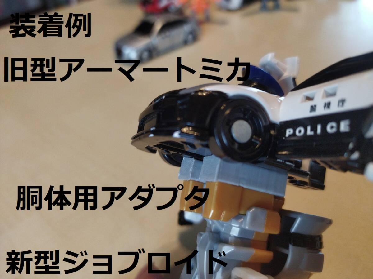 せっかく集めた旧型が産廃になるのが忍びなかったので、新型のジョブロイド(胴体)に旧型のアーマートミカ(手足)が取り付けられるアダプタを作りました。