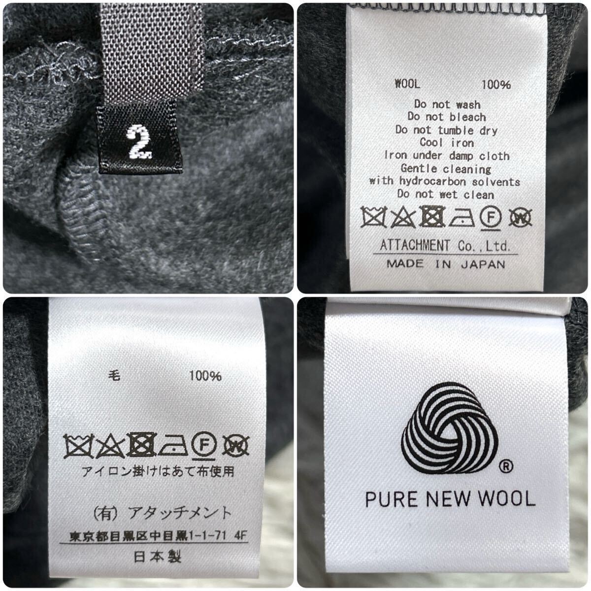 【美品】KAZUYUKI KUMAGAI カズユキクマガイ アタッチメント フランネラーナスムース タートルネック 長袖カットソー ウール グレー 2