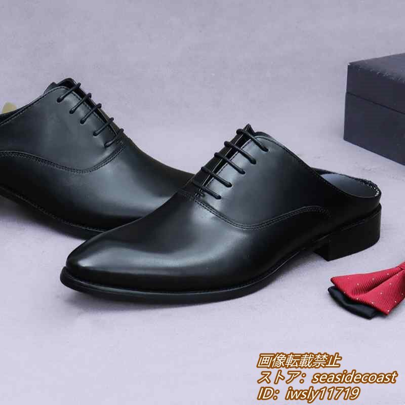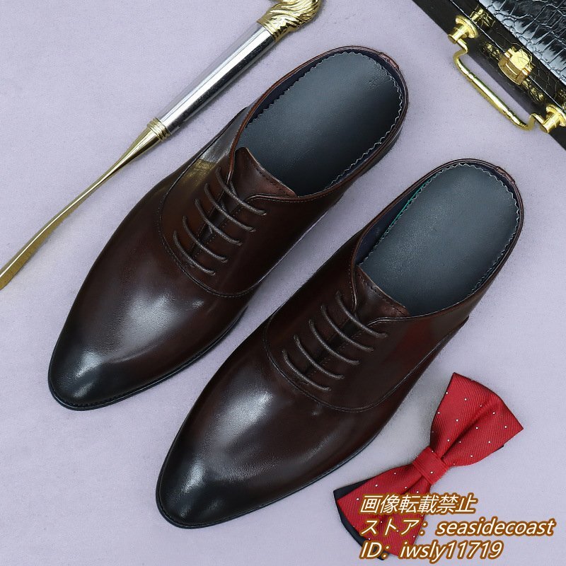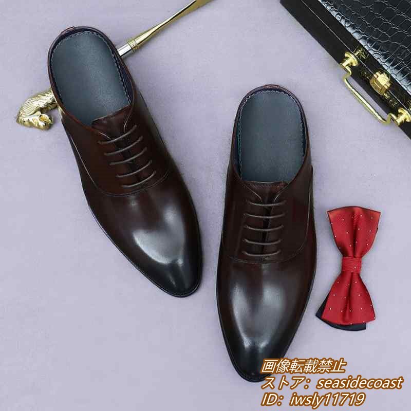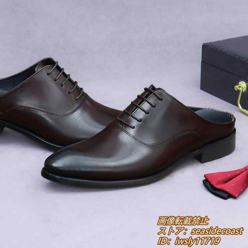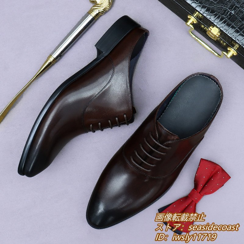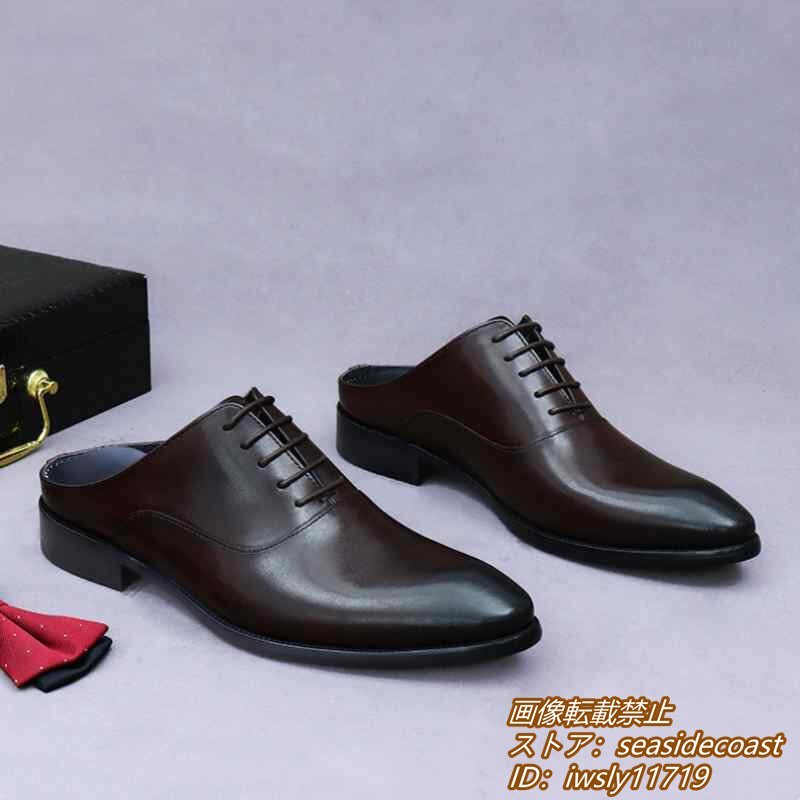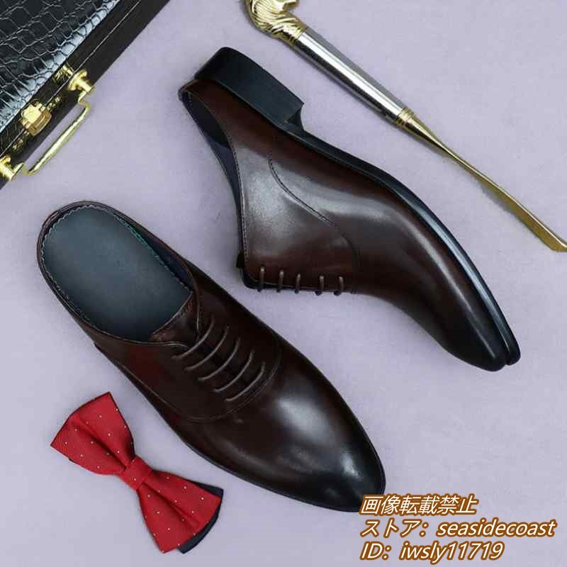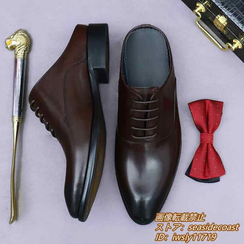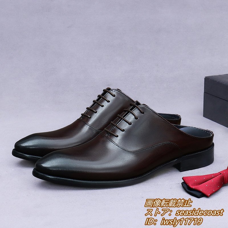 定価9万★最高級 本革 スリッパ 職人手作り 彫り サンダル メンズ ビジネスシューズ レザーシューズ 紳士靴 通気性 牛革 珈琲色 24.0cm