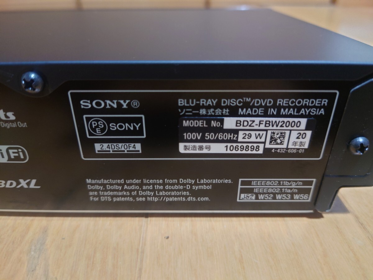 SONY BDZ-FBW2000 HDD/BDブルーレイレコーダー 2020年製の出品です。