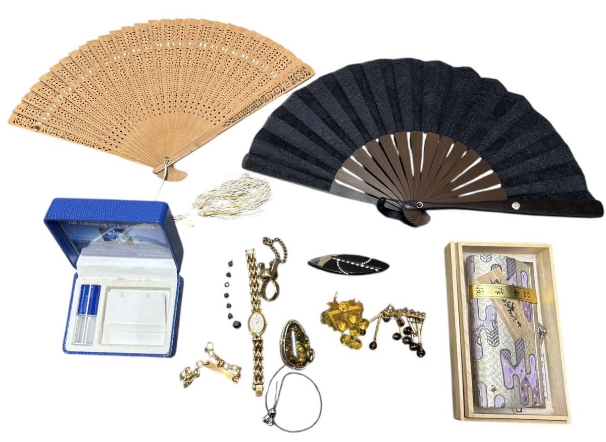 KY1994 遺品整理 未検品 アクセサリー OMEGA/ANNE KLEIN II/三越/ ネックレス/ブレスレット/指輪/イヤリング/時計/ブローチ/扇子