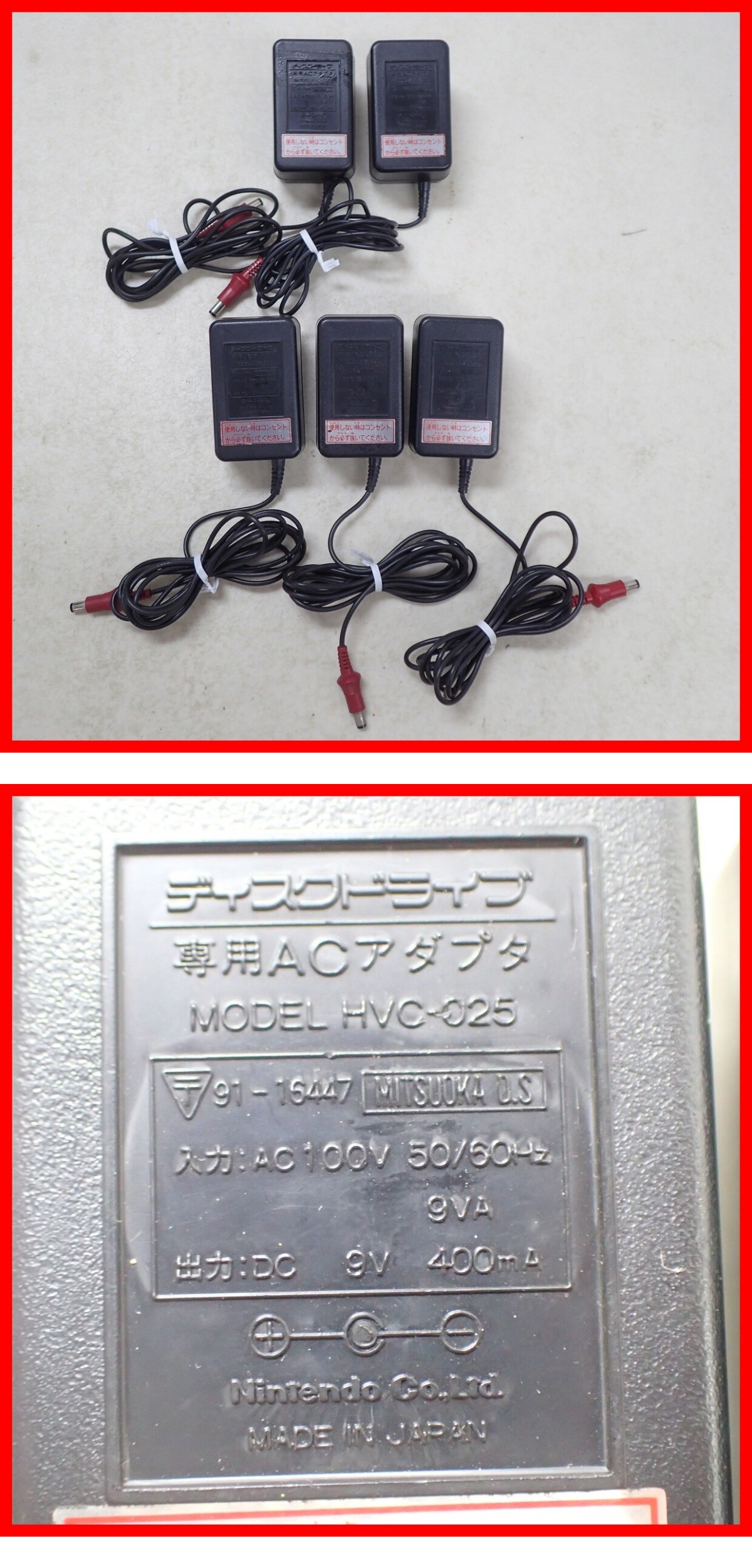FC ファミコン ディスクシステム ディスクドライブ 本体 HVC-022 5台 + 専用ACアダプタ HVC-025 5個 + RAMアダプタ HVC-023 5個 セット ■【未検品】として出品しておりますので、どの様な不具合が生じましても当店では交換・返金・返品等の対応はできません。 ■ご理解ご納得いただける方のみご入札をお願いいたします。 ■キズや汚れのある商品、動作しないもの、 破損等があるものも含まれている可能性がございますので、 入札される際はご注意願います。 ■写真のものが全てです。付属物の有無や状態については写真からご判断ください。 ■チェックに使用したモニターや機器等は、特に表記がないかぎりは付属いたしません。 ■古いものですので、当方のチェック時に動作を確認できたものでも、必ずしも商品到着後にも同じように動作することを保証するものではありません。 ■動作確認済み品で、一部のソフトだけが動かない場合など、ソフトと本体の相性による問題については当方の責任の範囲外となりますのであらかじめご了承ください。 ■中古品となりますのでソフトや本体等のメモリー、バックアップ電池等については動作を保証いたしかねます。 ■商品によりますが、発売されてから10年以上経過している中古品であることをご理解いただいた上でご入札をお願いいたします。なお、新品や美品、そのほか特記事項がある場合は別途明記します。 ■ご落札いただいた本体及び箱や取説、付属品、梱包材などは1つでも廃棄や破損をしないようにお願いいたします。 ■商品のご落札後、廃棄や破損をした場合、あるいは【修理や整備、カスタム、付属物の抜き取りやページの抜き取り/書込み等、ご落札者様の目的に応じて何らかの手が加えられた商品】に関しましては、問題があった場合でも対応や返金などの対処ができませんのでご注意ください。 |