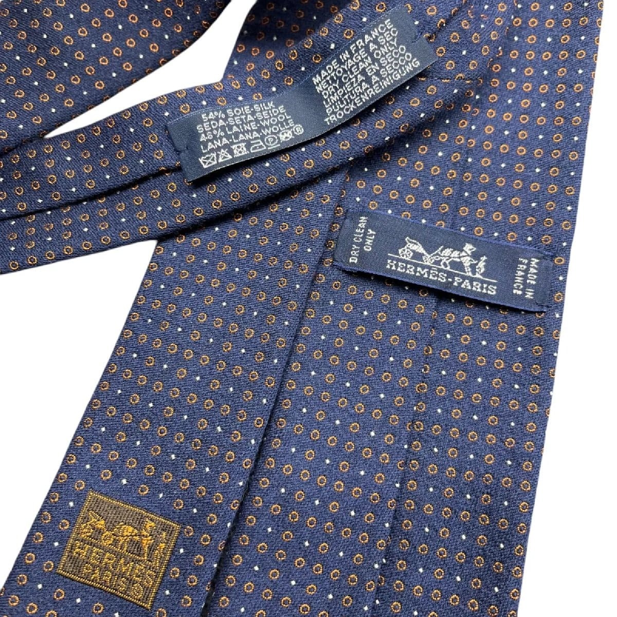 エルメス HERMES ウール、シルク ネクタイ ネイビー メンズ S5P202