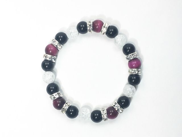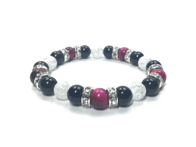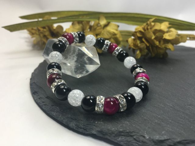ピンクタイガーアイ&オニキス&クラック水晶 パワーストーン ブレスレット 天然石ブレス (シルバー) お守り 魔除け レディース ブラック 黒