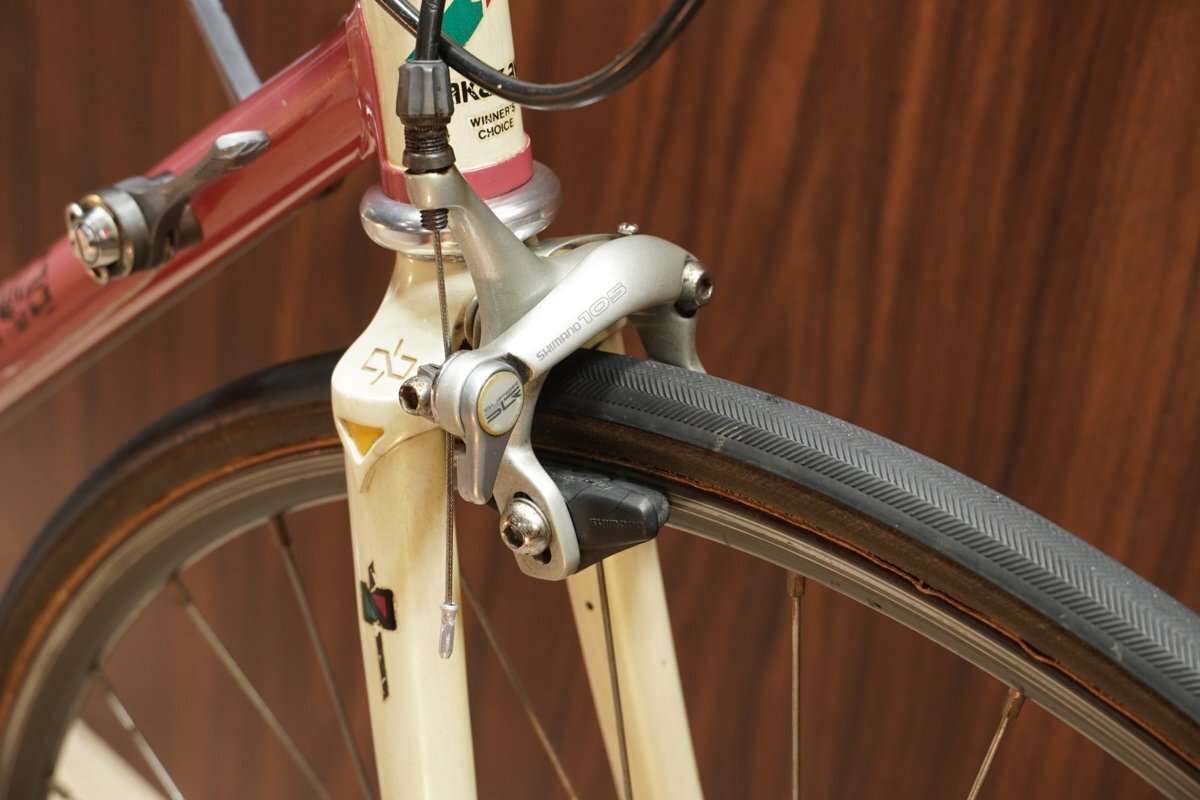 年式:2000年頃 フレーム:クロモリ フォーク:クロモリ メインコンポ:SHIMANO DURA-ACE 105 600MIX クランク:SHIMANO 170mm 52T:42T ホイール:SHIMANO 7400 DURA-ACEハブ ARAYA AERO 4リム タイヤ:700X21C チューブラー スプロケット:8S 13T:23T ハンドル幅:460mm ステム長:80mm サイズ:490(C-T) トップチューブ長(C-C):510mm※実測 (※ホリゾンタル換算値) シートチューブ長(C-T):490mm ※実測 適応身長:160cm ~170cm程度 実測重量:8.95kg ※掲載画像状態 |