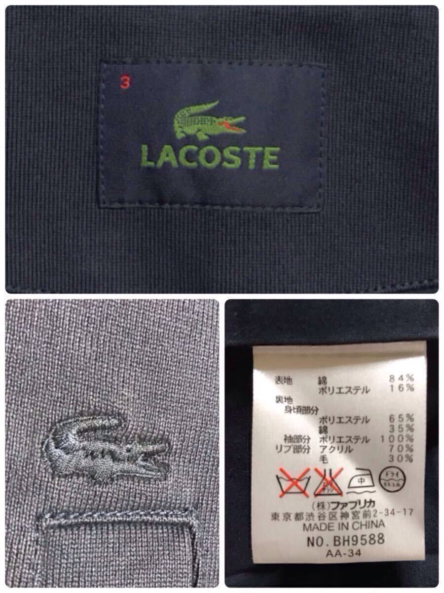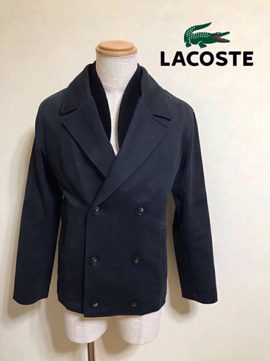 LACOSTE ラコステ Pコート ジャケット アウター トップス 長袖 サイズ3 ネイビー ファブリカ製 BH9588 襟リブ